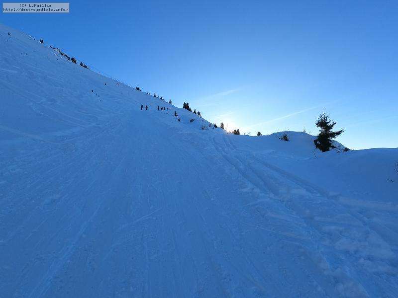 Avec un tel niveau de préparation, j'attaque la montée à … 15h : le parking est encore bien occupé, tout est tracé mais ... le soleil est là, la neige est bonne, yooooouuuhooooouuuuu !!! Quel pied.