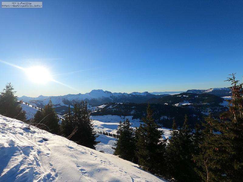 Grand soleil après quelques jours de précipitations, idéale pour sortir les peaux : malheureusement, il a plu très haut et, la trace de Beauregard que je souhaitais prendre, semble trop légèrement pourvue. Ca a l'air beaucoup mieux sur le massif de l'Étale.