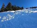 Dès le chalet des Juments passé, la neige devient abondante, bien qu'un peu compacte : tant mieux, car ici aussi, il ne restait plus grand-chose il y a encore quelques jours ! De bon augure pour la descente.