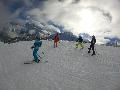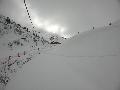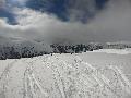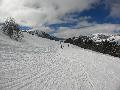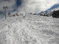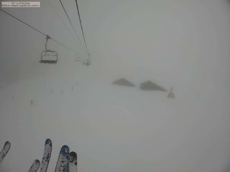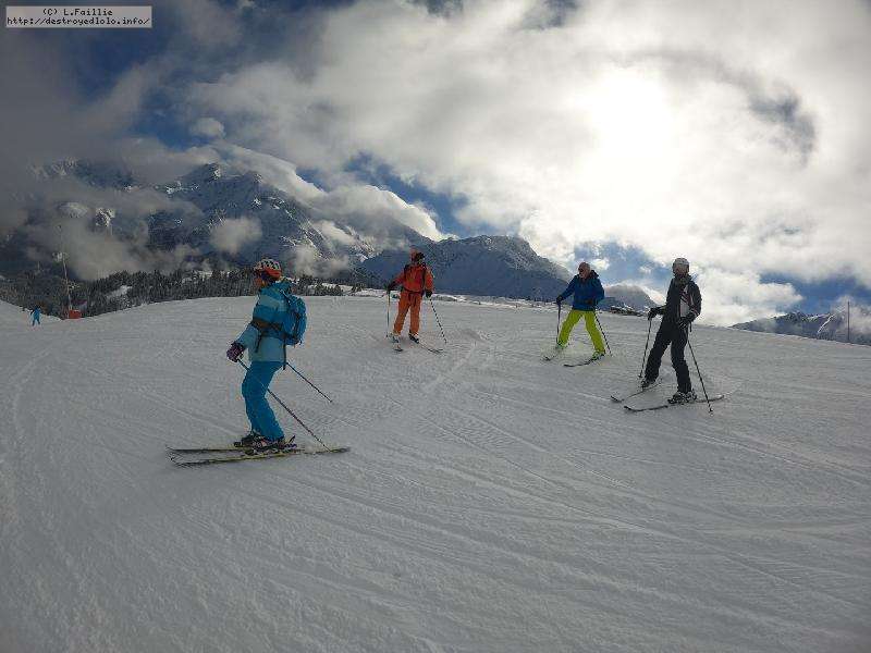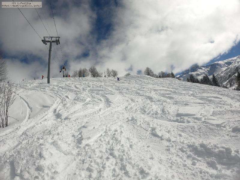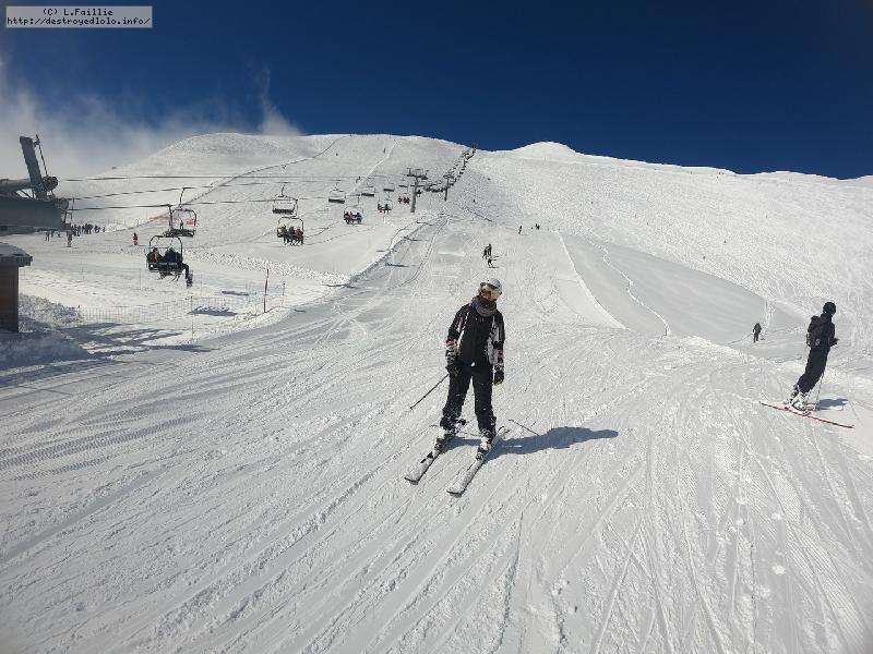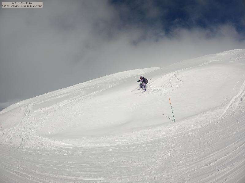 Visiblement, il a plu haut et le hors piste est totalement impossible car la neige est trop traffollée. Les pistes ne sont pas mieux : il y a des grosses plaques de verglas et même avec des bons carres, ça n'accrochent pas. Mais bon, l'important, c'est de glisser
