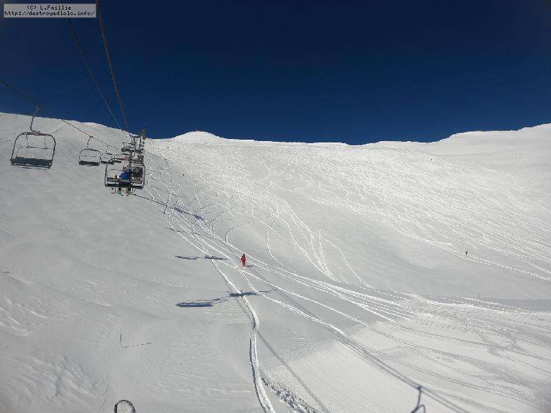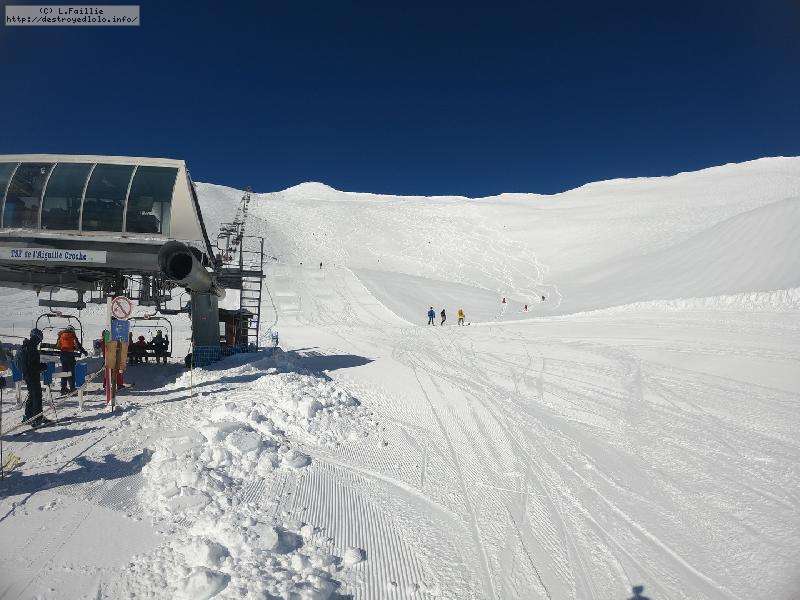 - beaucoup de départs, partout. Il serait joueur d'aller sur les hors-pistes les plus exposés au soleil ... d'ailleurs, y'a personne. Malheureusement, c'est aussi le cas de l'Aiguille Croche, d'habitude excellente. Tout est tracé, traffolé, mais surtout, passablement croutés.