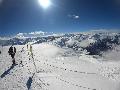 Il fait très chaud, retour sur le plateau pour profiter de la neige qui n'a pas encore trop transformée, en particulier sous l'aiguille de Rosellete.