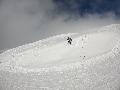 Avec de telles températures, évidemment, on évite les gros shuss, sous peine de finir complètement glacé en bas. Heureusement, le soleil est là et la neige est peuffiennement parfaite : hors piste à gogo.