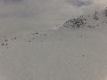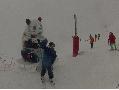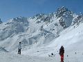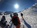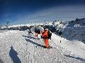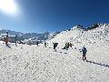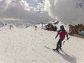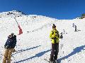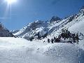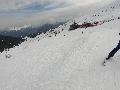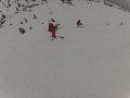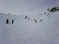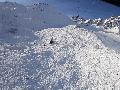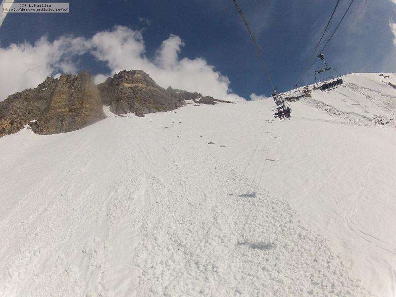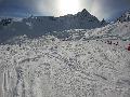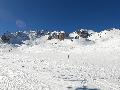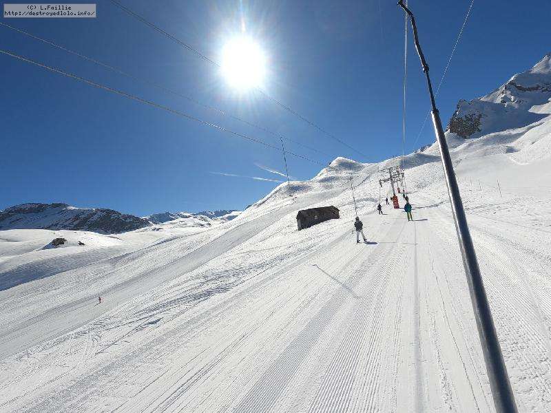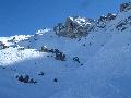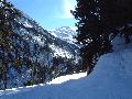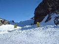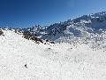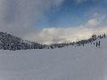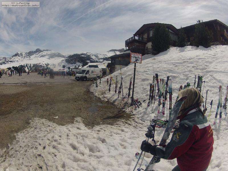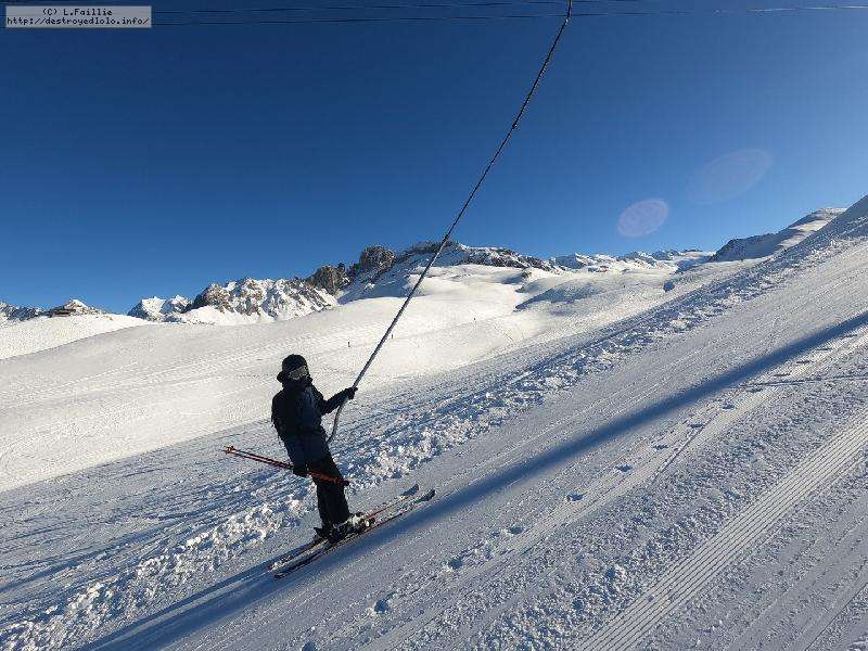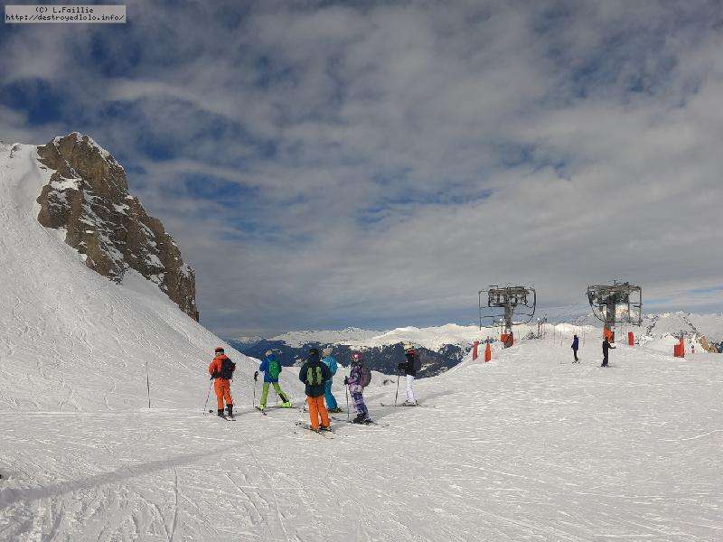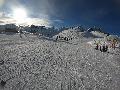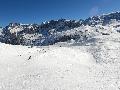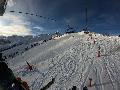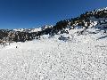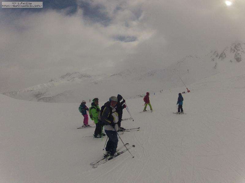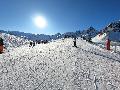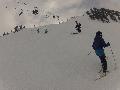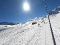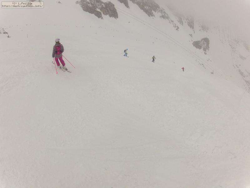 Les pistes sont bien préparées, agréables à skier et le carrelage n'apparaitra vraiment qu'en début d'après midi : il faut dire qu'il y a du monde, beaucoup de monde, et les touristes raclent pas mal. Mais heureusement, les pistes sont assez larges pour échapper aux collisions. N'empêche qu'on verra quand même quelques barquettes : les vacances commencent mal pour certains.