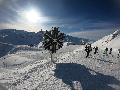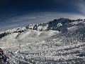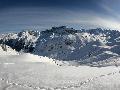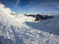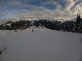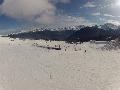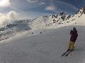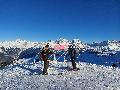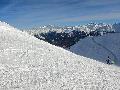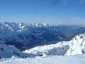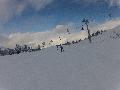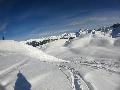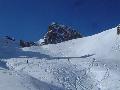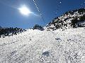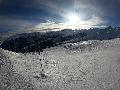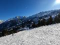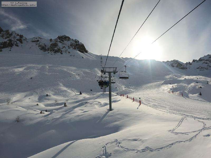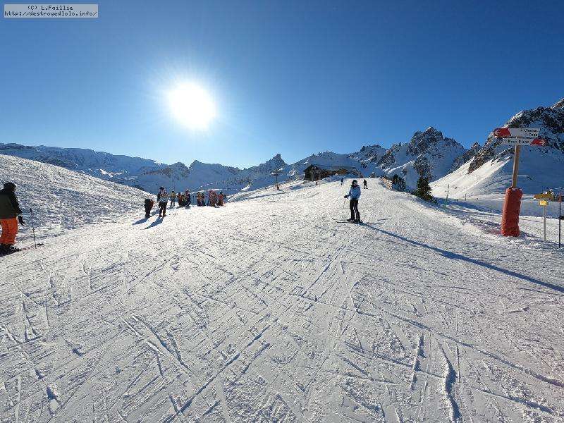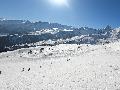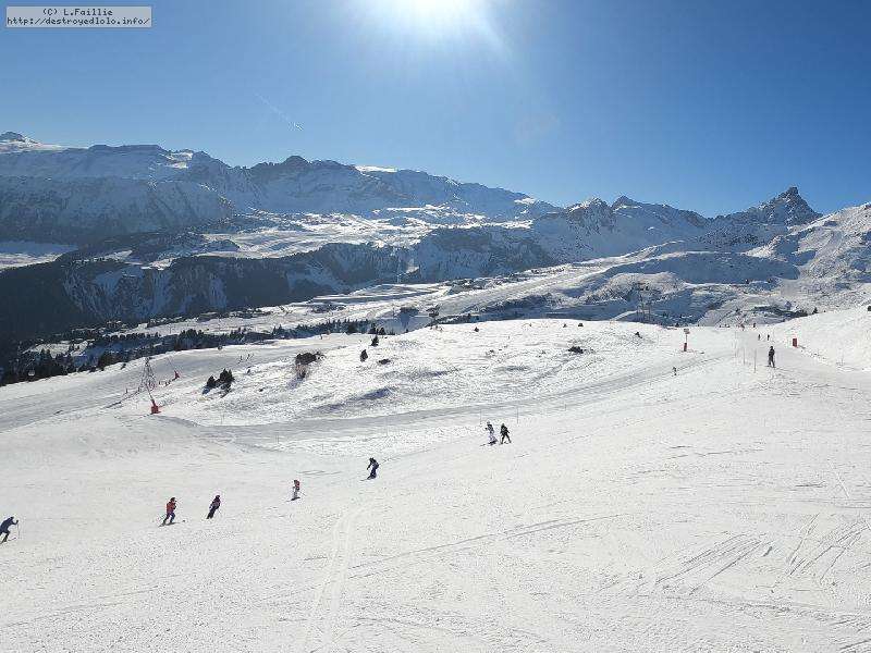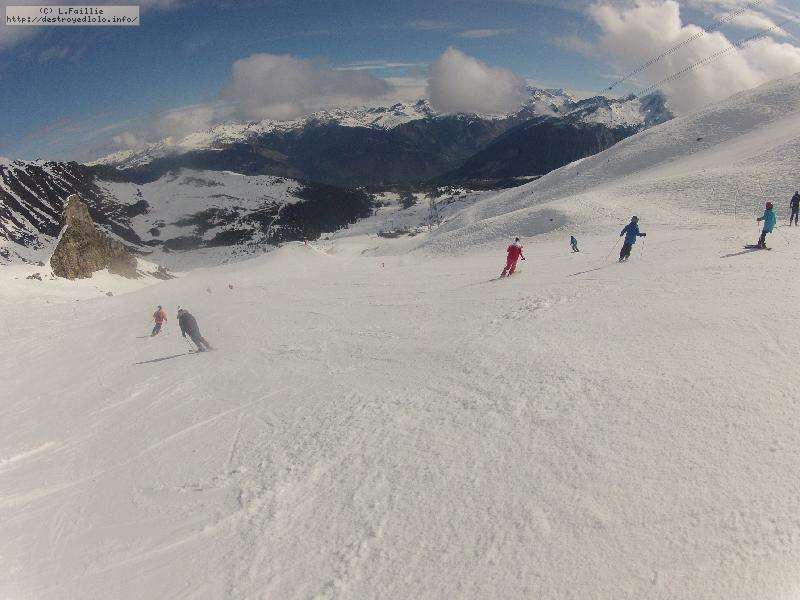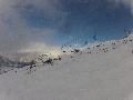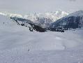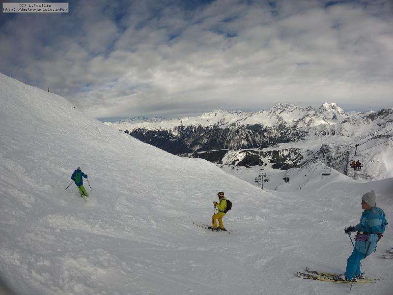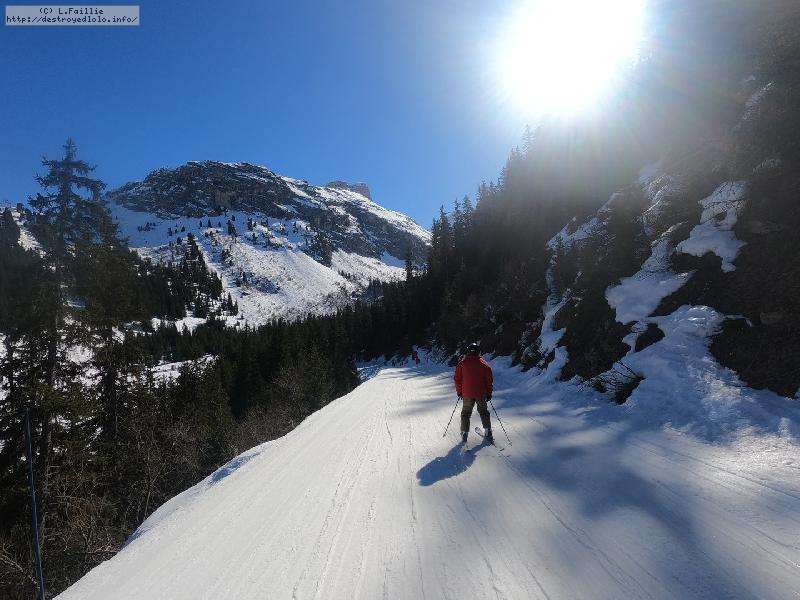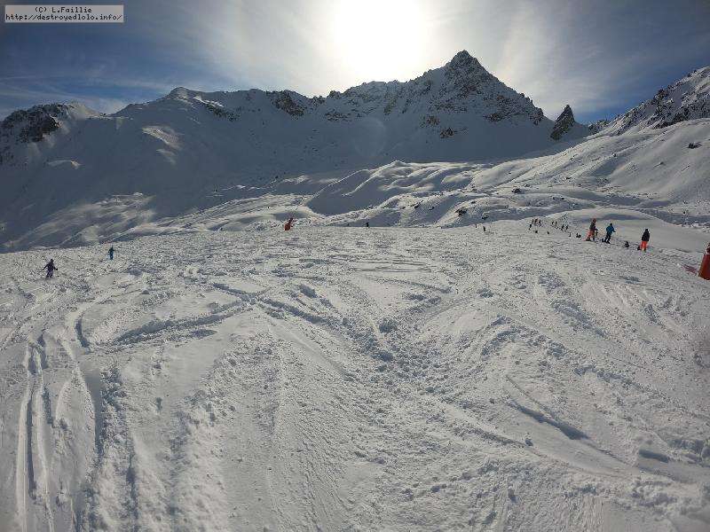 Hormis sur les pistes les plus basses, gelées à cause des passages et des canons, la neige n'est pas mal : 10 à 15 cm de fraîche sur une sous-couche glacée. Comme ça, ça ne fait pas réver, mais très agréable en fait. Et nous aurons même droit à du soleil !