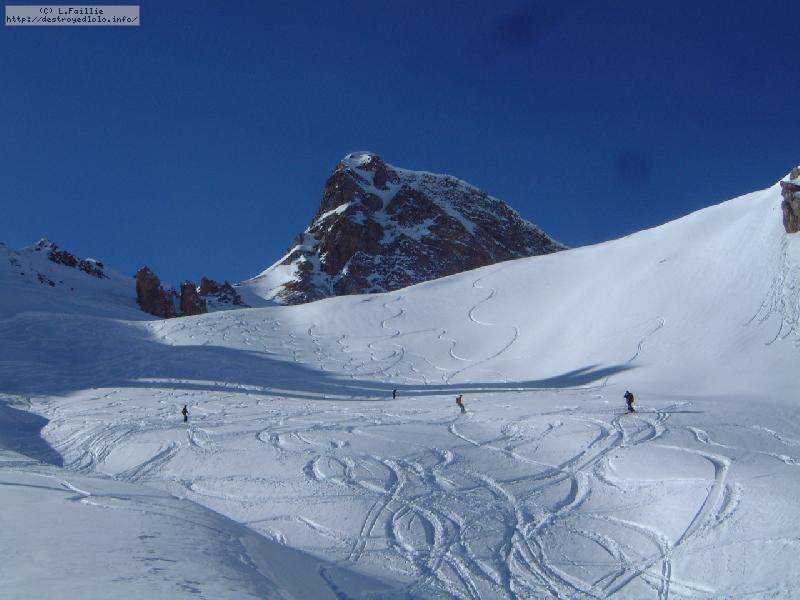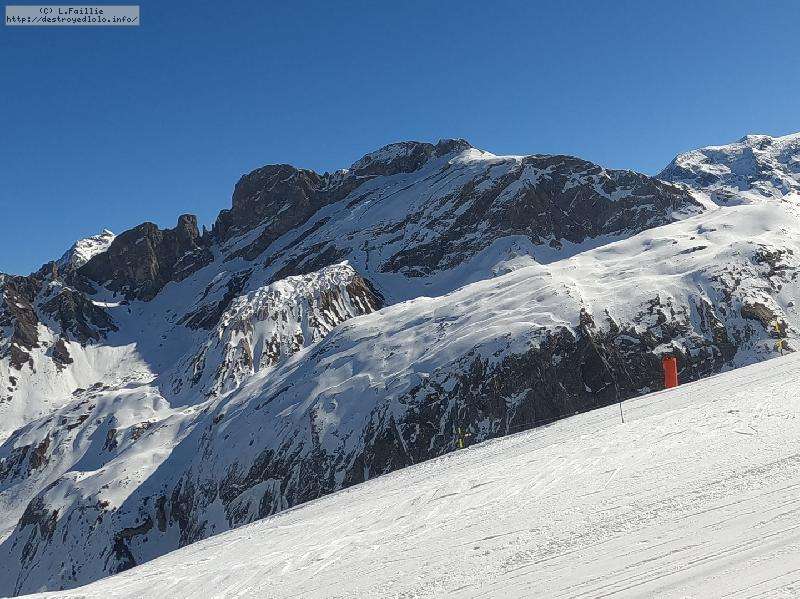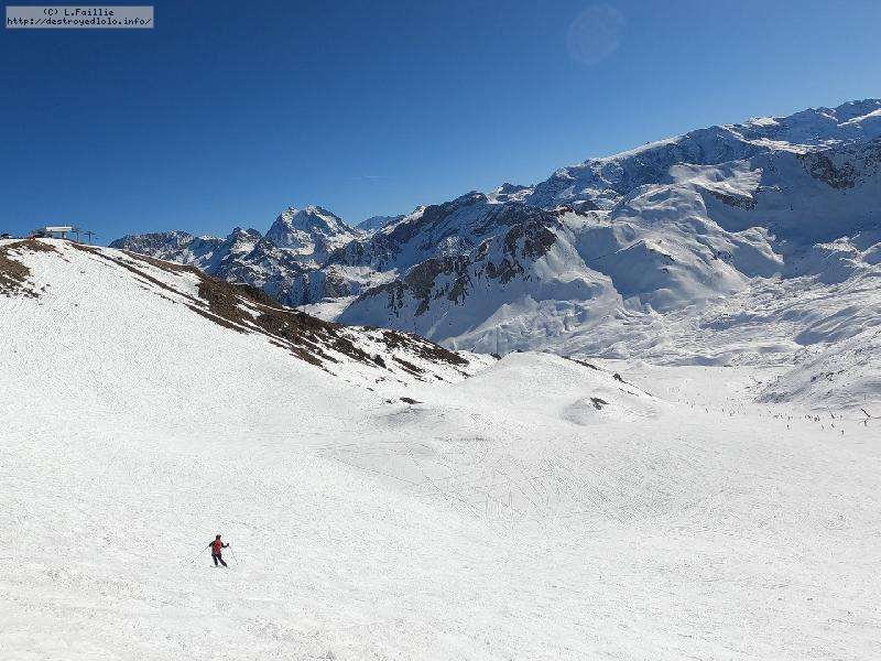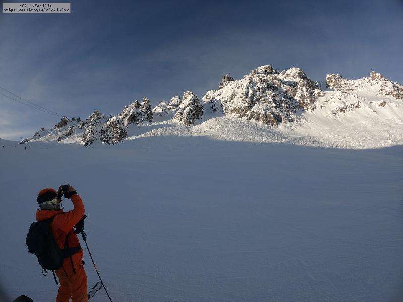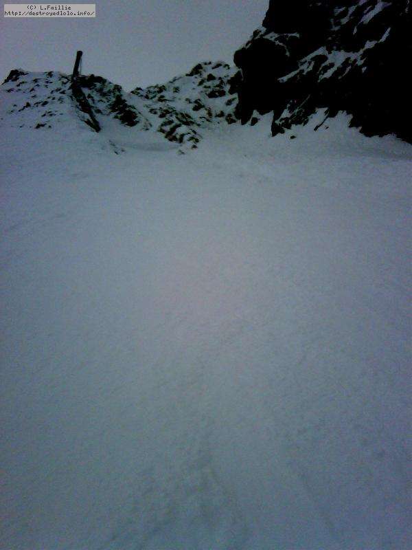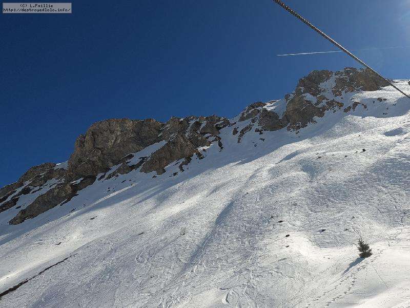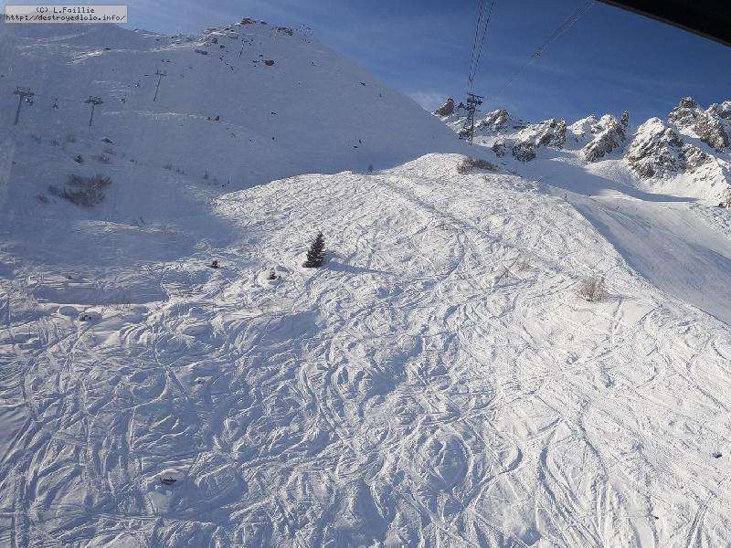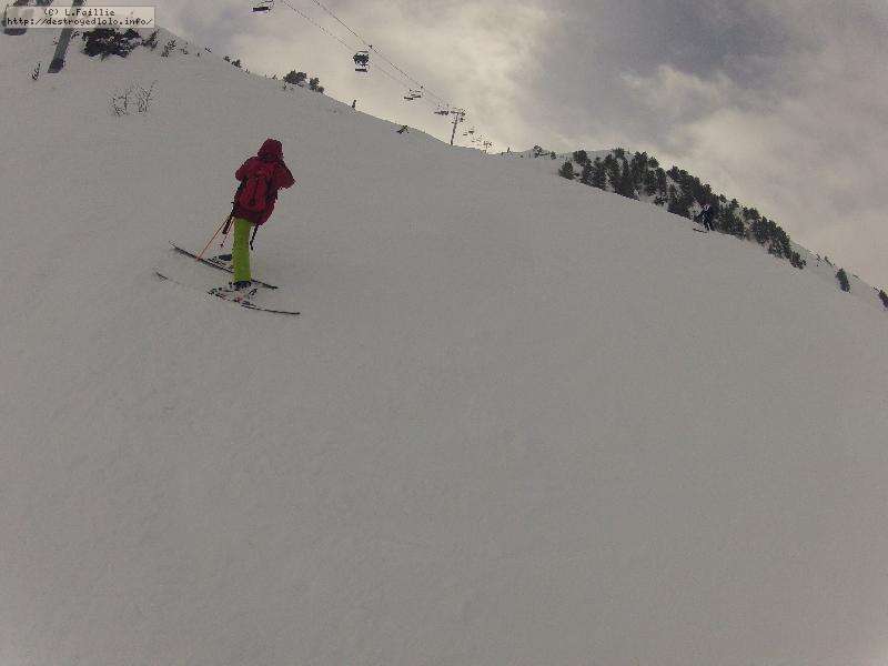 Et le hors piste ? Ben ... pathétique à tous les étages, en tout cas en matinée : totalement verglacé sauf sur le bas où ça devient de la soupe. D'ailleurs, le fameux couloir était fermé pour cette raison et les combes d'à côté, pas mieux. Non, une journée à rester sur les pistes.