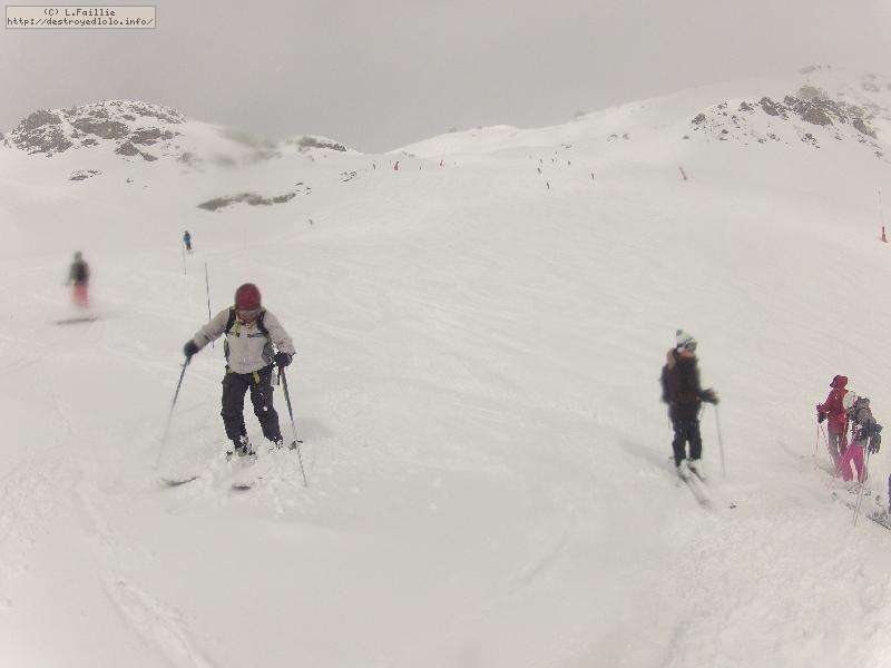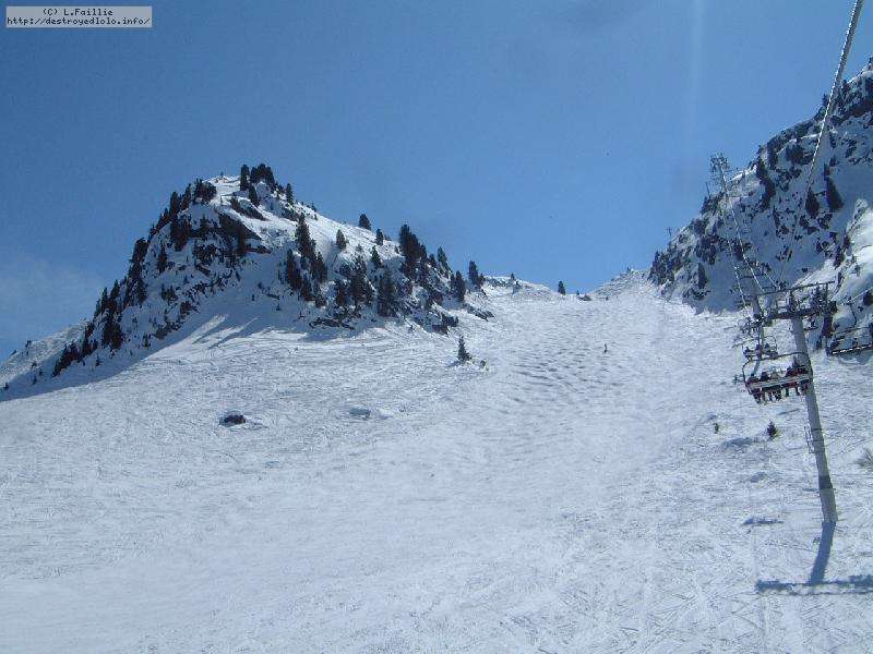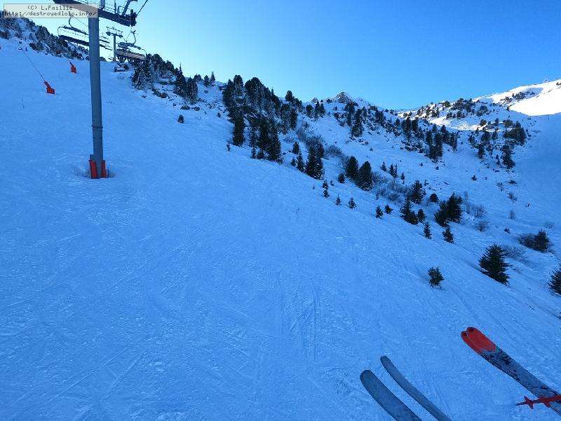 Et puis, on a tenté le bas de l'Eclipse : piste de compétitions préparée pour la compet ... et parfaitement inskiable. Verglacée jusqu'au bleu, PERSONNE n'avait le moindre contrôle sur quoi que ce soit. Alors, en compet, ils s'en foutent car ils y passent tout droit, mais nous n'avons pas le même niveau et surtout, il y avait des gens. Bref, limite dangereux !