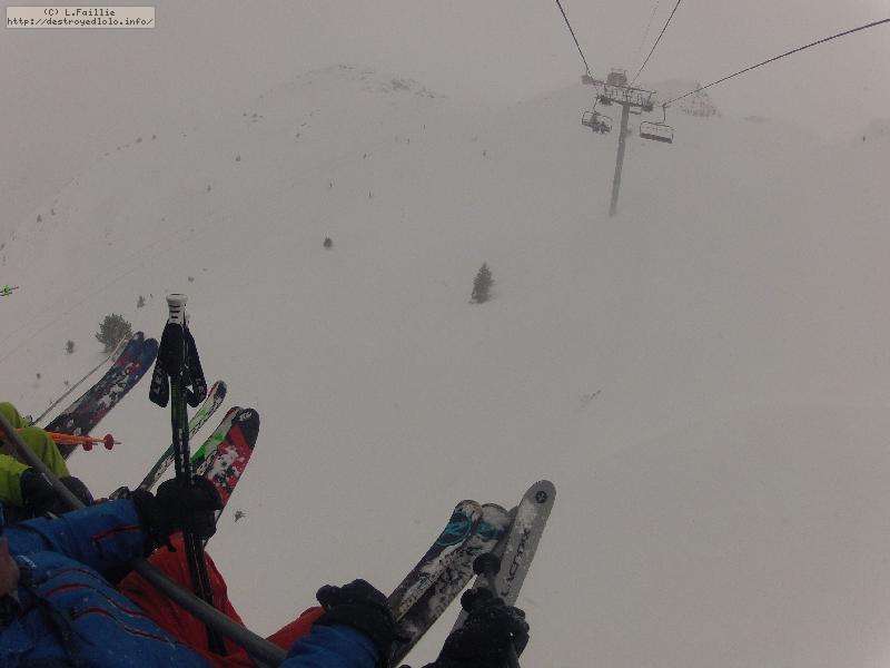 La météo avait annoncé un temps maussade ... bien, elle ne s'était pas trompée. Elle annonçait que ça allait finir avec beaucoup de vent ... exacte aussi : les remontées ferment derrière nous.