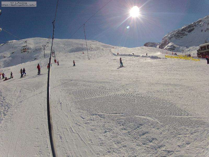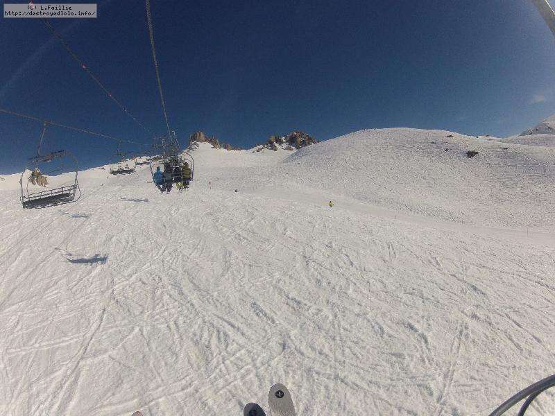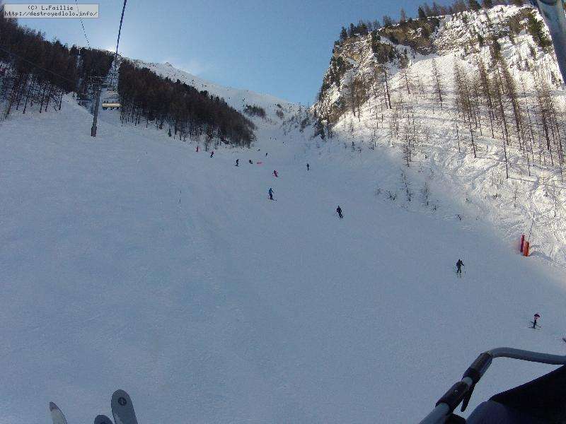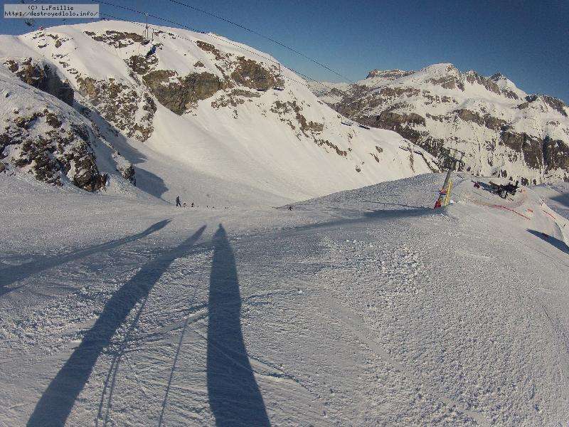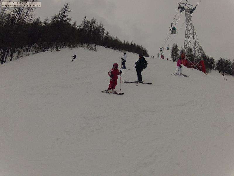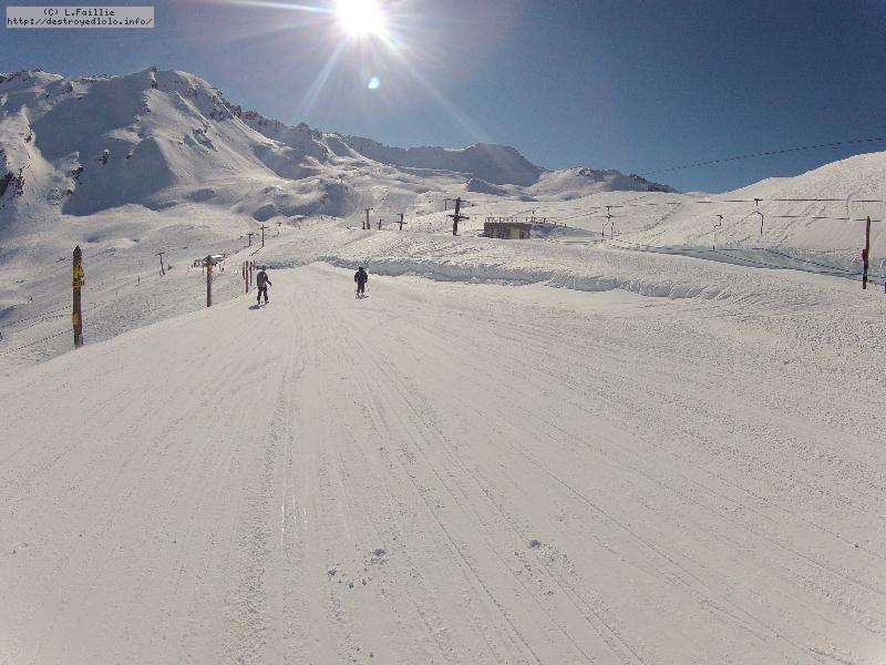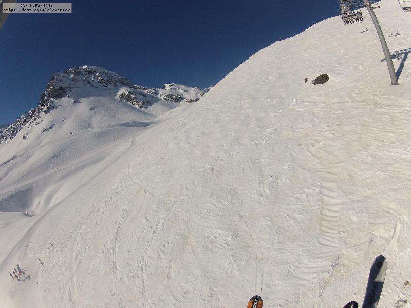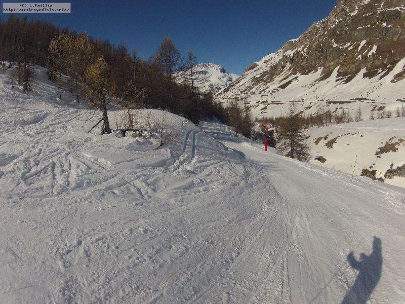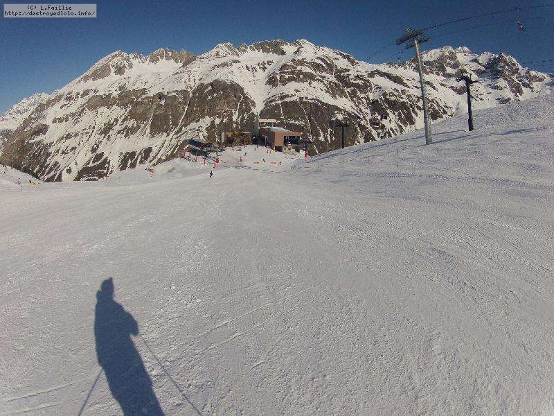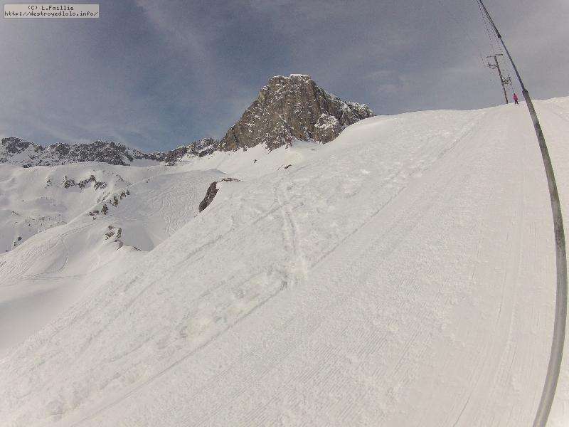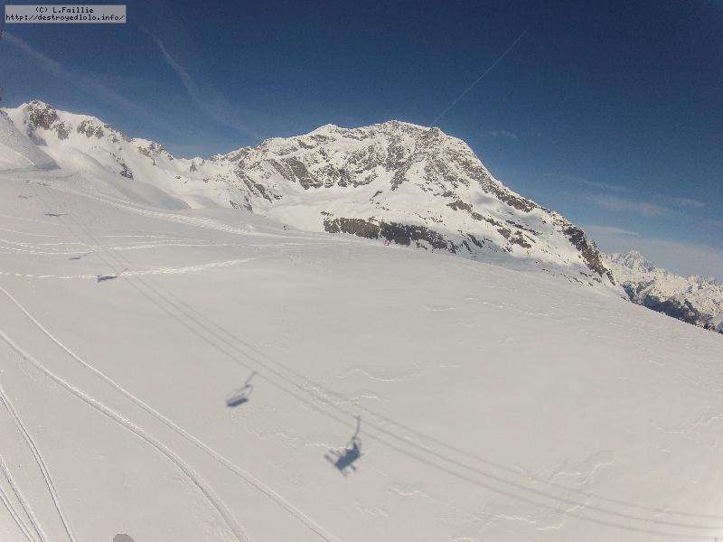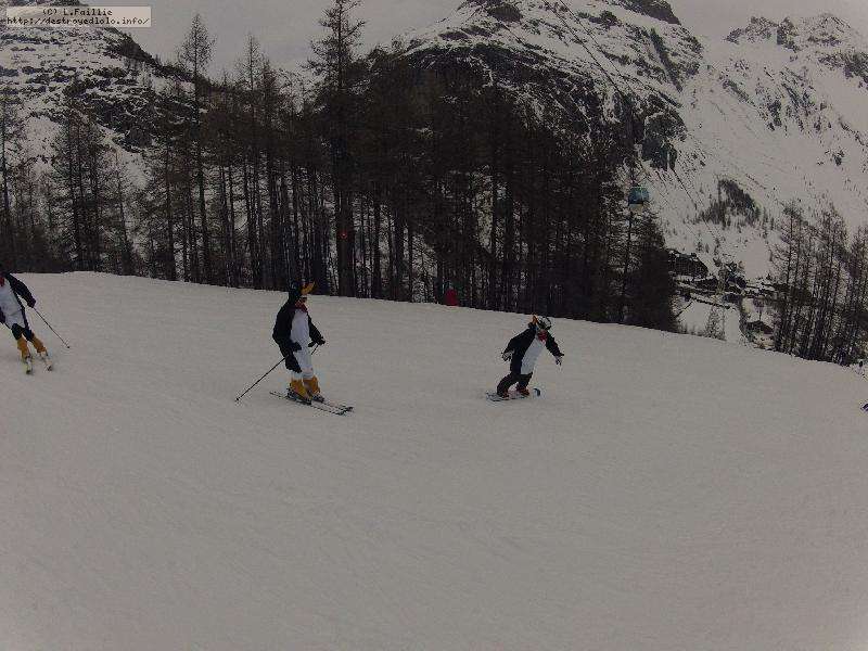 Le samedi est une vrais catastrophe : beaucoup beaucoup de vent, et seul le bas est ouvert. Bref, nous passons notre matinée sur le bas de la Face (seul Bellevarde express est ouvert).