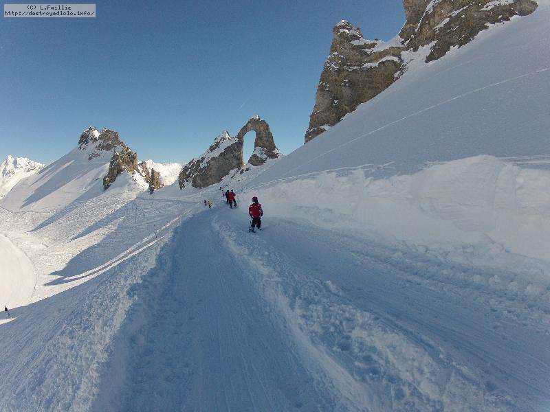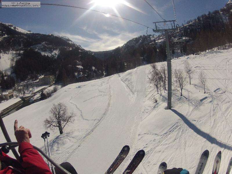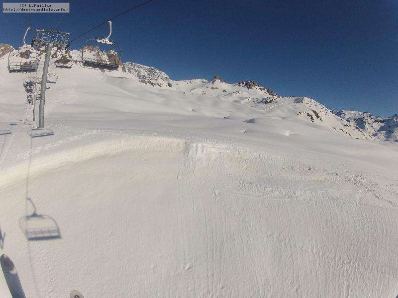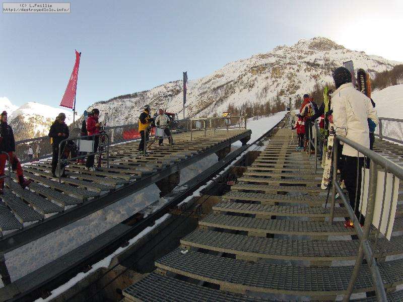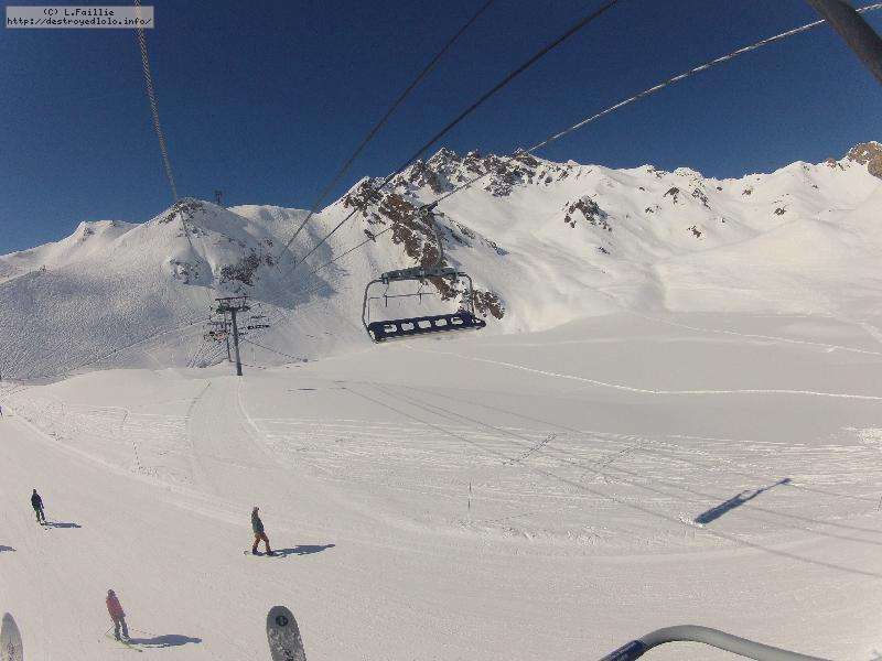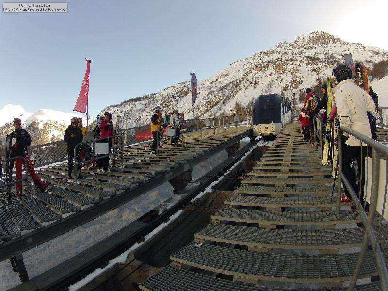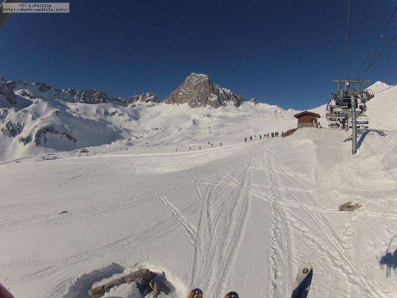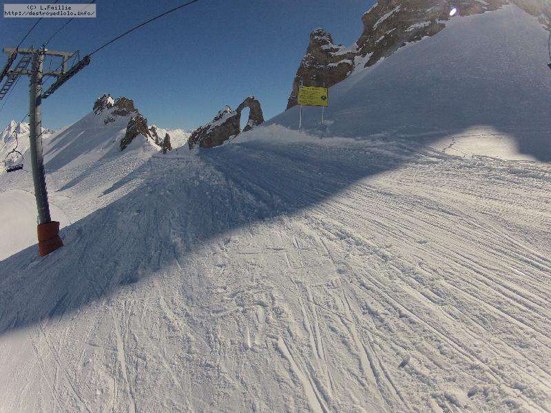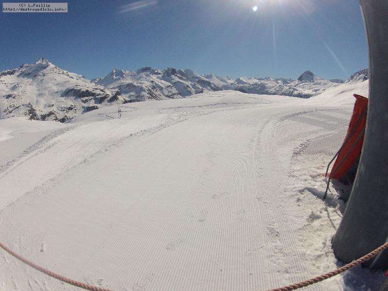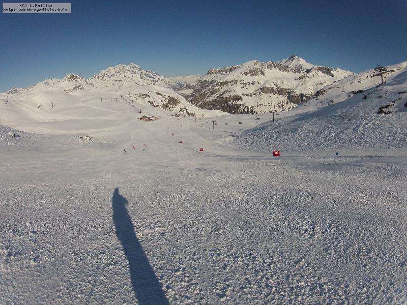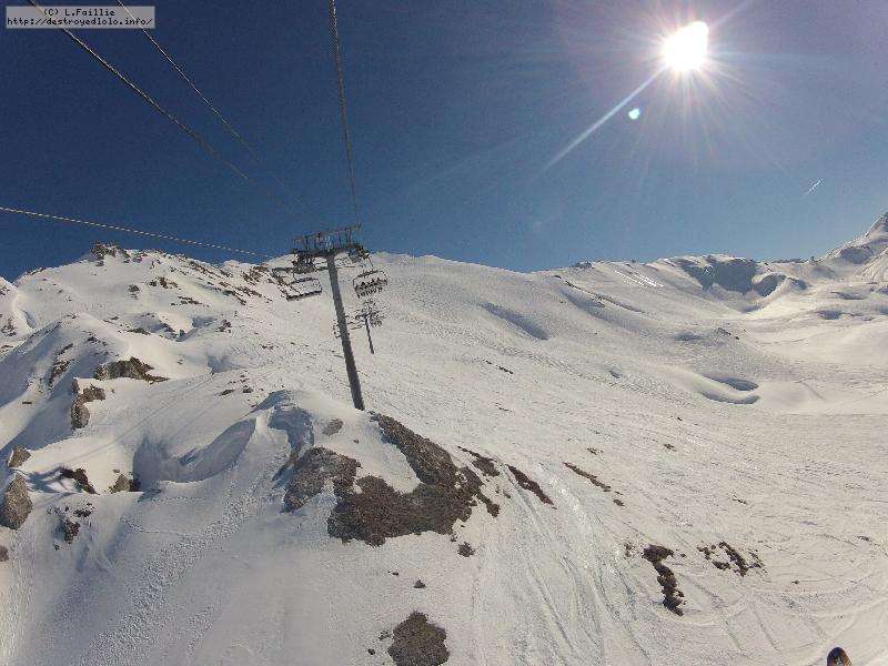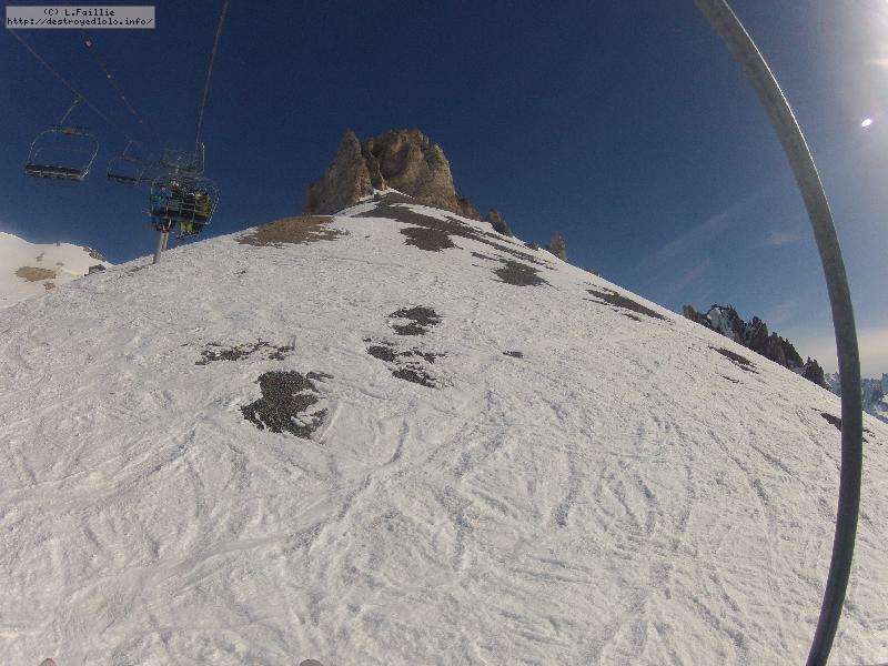 Le samedi est une vrais catastrophe : beaucoup beaucoup de vent, et seul le bas est ouvert. Bref, nous passons notre matinée sur le bas de la Face (seul Bellevarde express est ouvert).