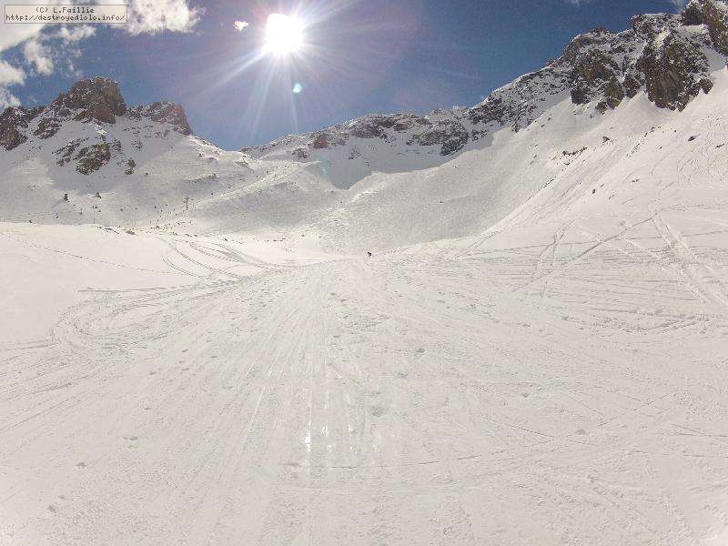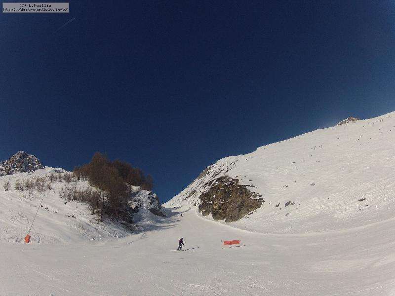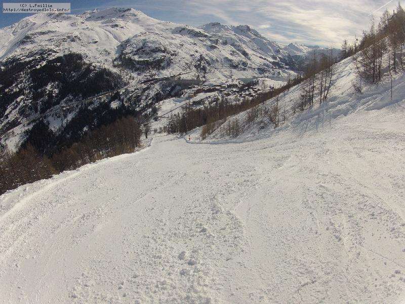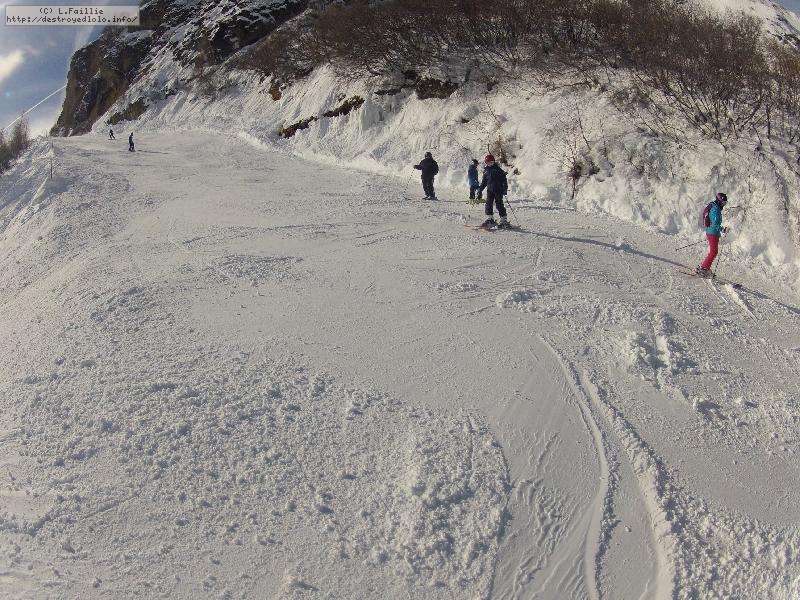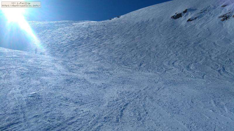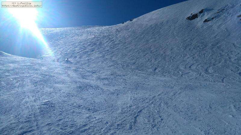 Le pisteur nous avertis qu'elle "n'est pas terrible en bas", la vidéo atteste du contraire : le haut est simplement excellentissime et pour une fois, le bas est largement meilleur sur la piste (un gros champs de bosses peuffien) qu'en dehors qui est bien croûté.