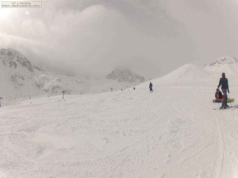 Mais c'est au glacier de la Grande Motte que nous nous éclaterons : aucune idée des conditions des pistes, le bonheur est en dehors (comme souvent).