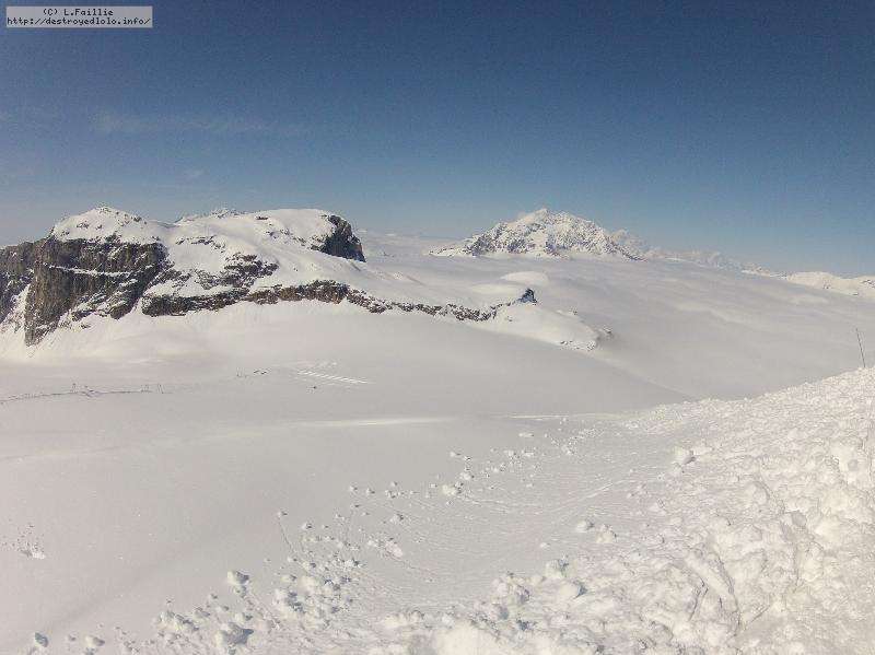 Même s'il a semble-t-il neigé un peu ces derniers jours, la chaleur fait qu'il n'en reste plus rien : nous nous retrouvons dans les mêmes conditions que le W.E. précédent avec de la neige relativement dure.
