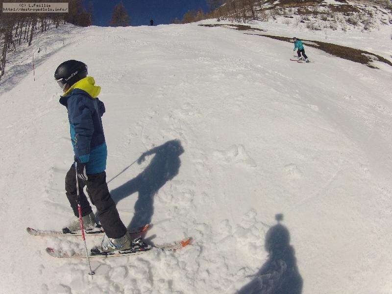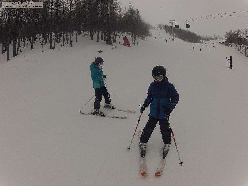 Océane n'est pas en pleine forme et redescend à l'appart après quelques descentes sur Grattalu. Joris et son Papa vont s'éclater sur le col de Ves avant que Maman ne revienne.