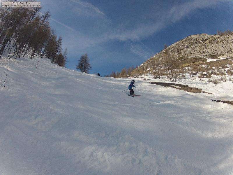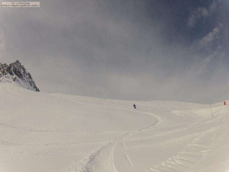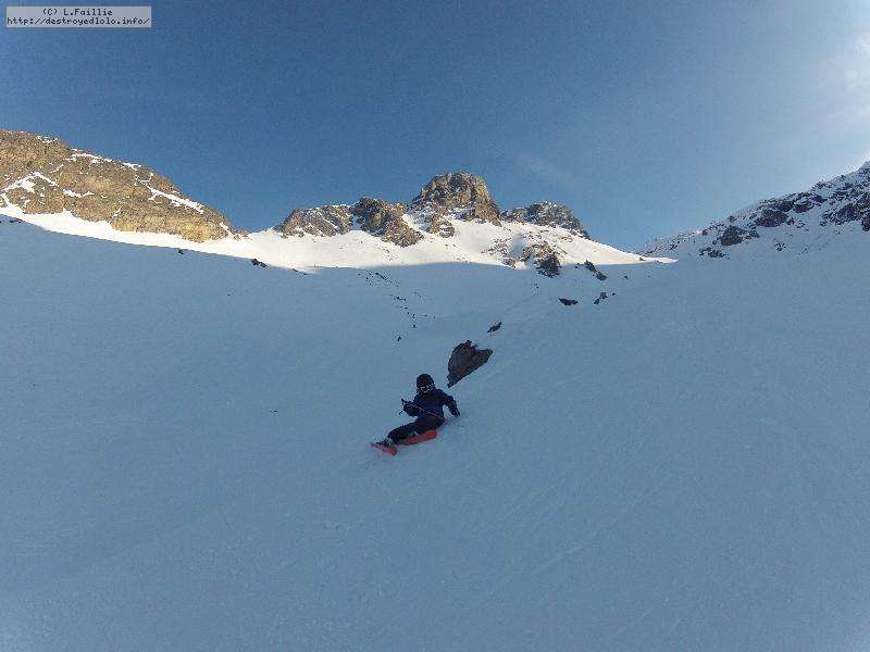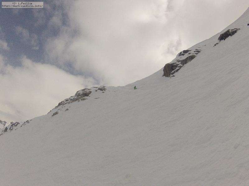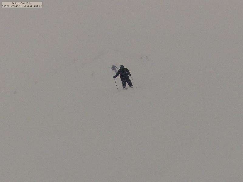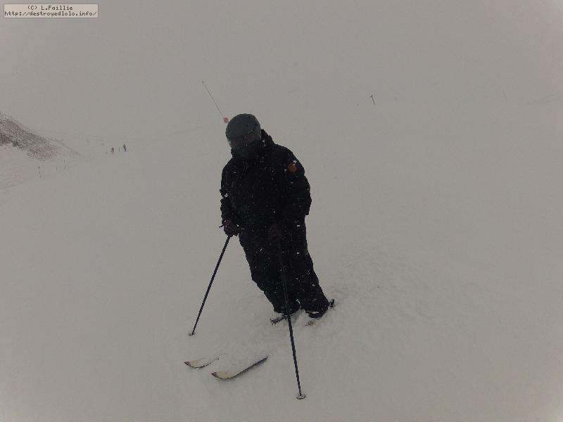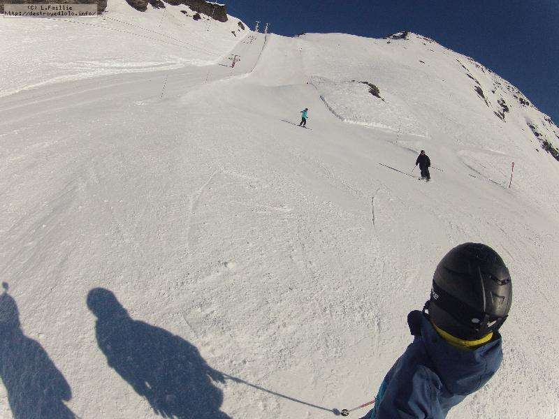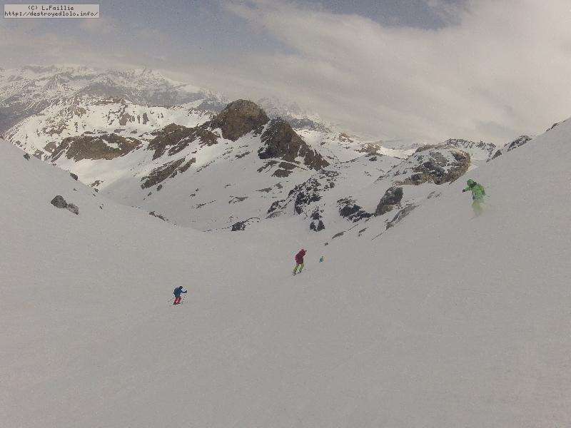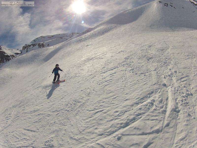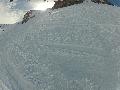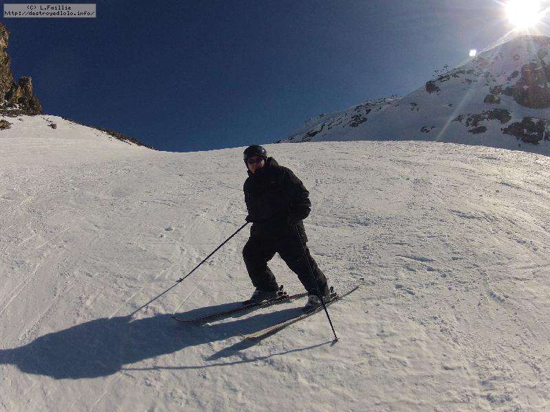 Et là, c'est le drame : le soleil est revenu, un grand champs de peuf VIERGE devant papa qui descend à fond et ... crack !!! Il n'y avait qu'un seul rocher, bien caché sous la peuf (au moins 30 cm grâce au vent)