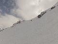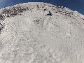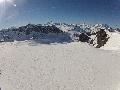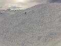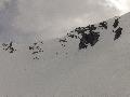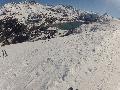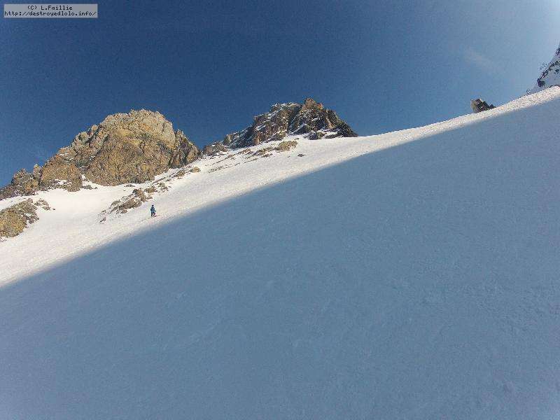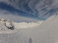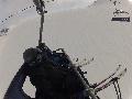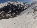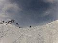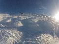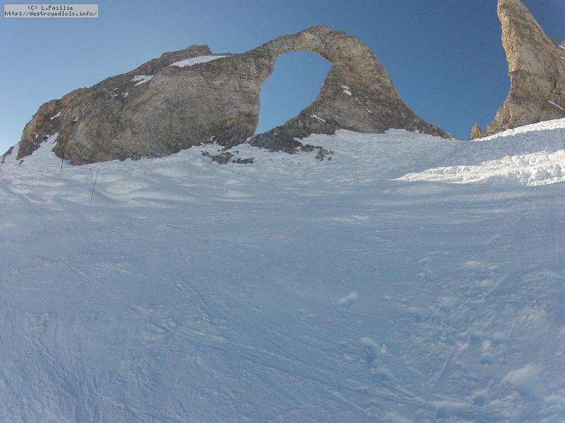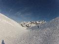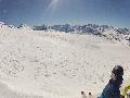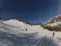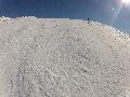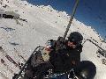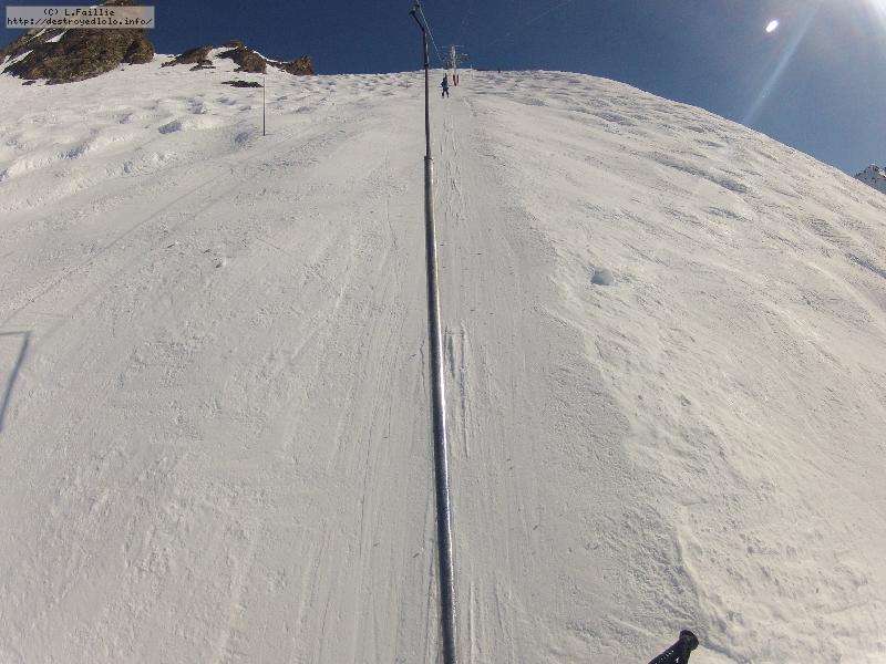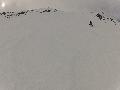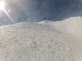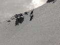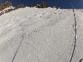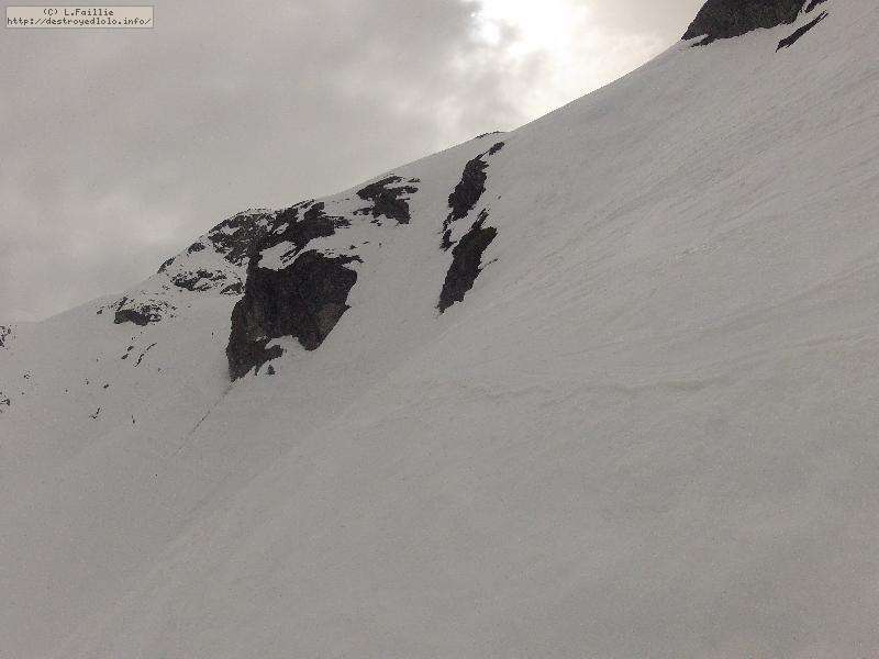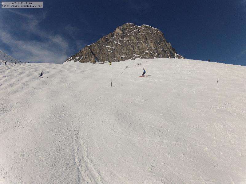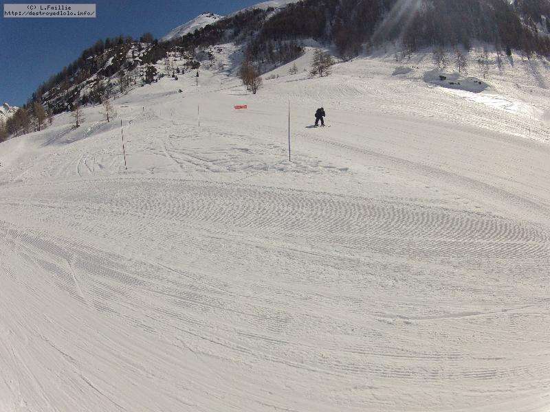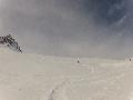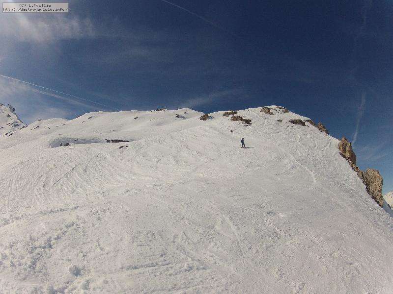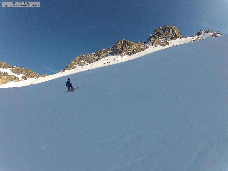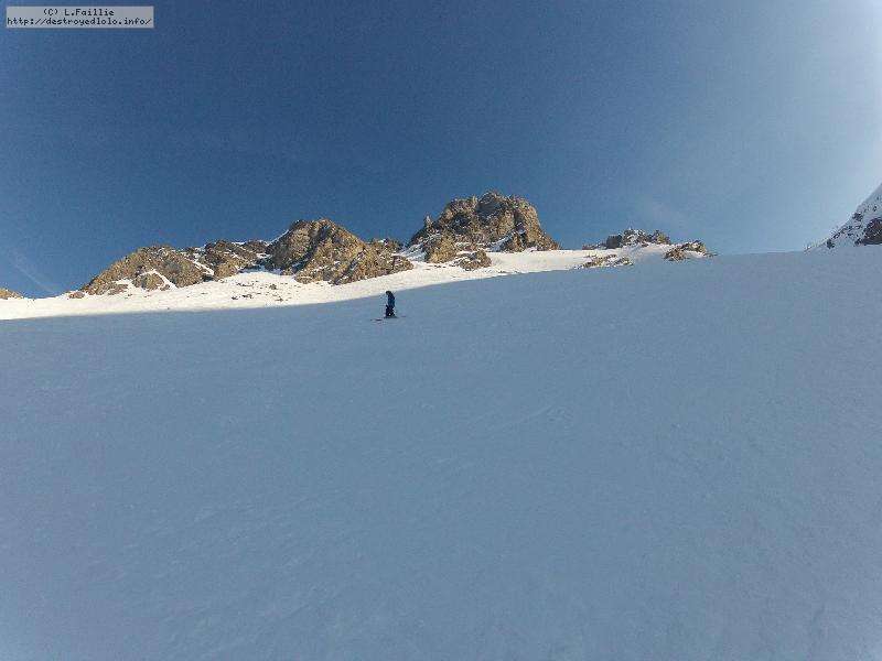 Et là, c'est le drame : le soleil est revenu, un grand champs de peuf VIERGE devant papa qui descend à fond et ... crack !!! Il n'y avait qu'un seul rocher, bien caché sous la peuf (au moins 30 cm grâce au vent)