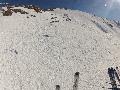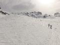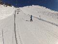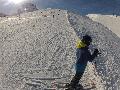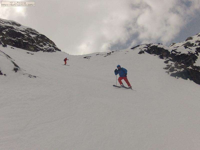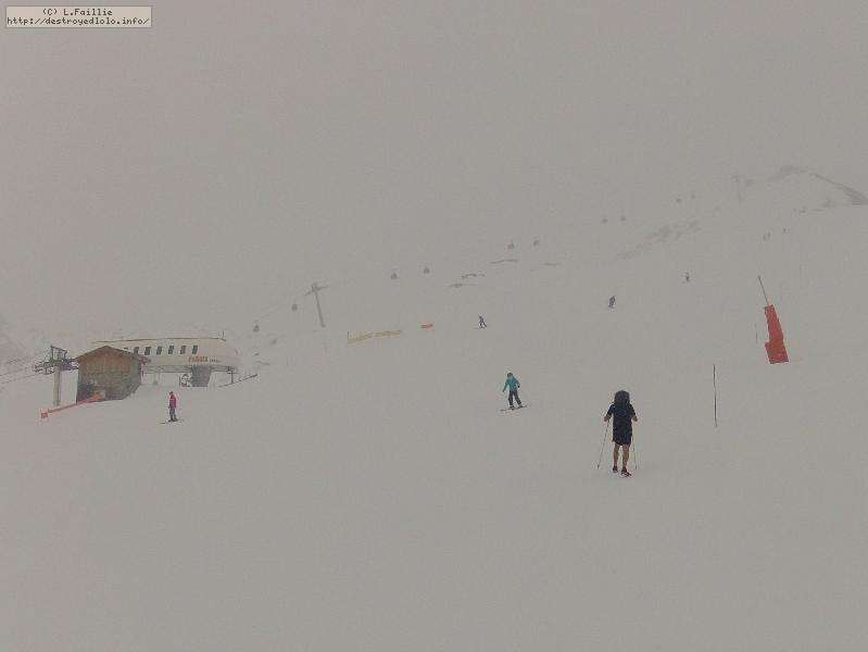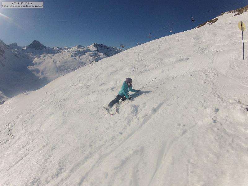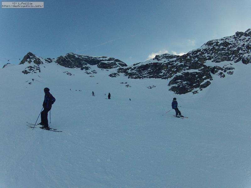 Océane va mieux, nous décidons de passer la journée sur le glacier de Pissaillas. Et pour rejoindre Val d'Isère, nous passons par la noire de l'épaule du Charvet : il faut avouer que sur le bas, elle a bien mangé, mais bon, moins que monde que sur la bleue Santons.
