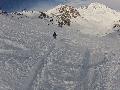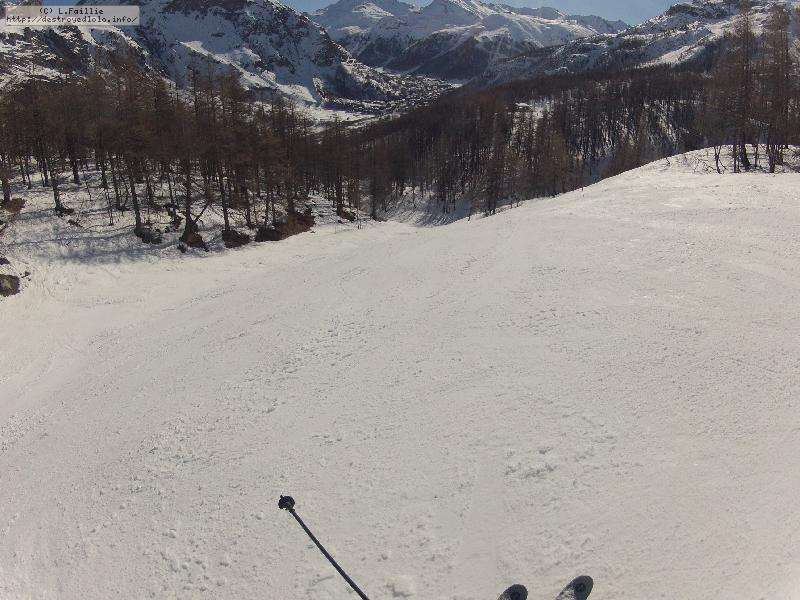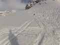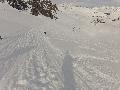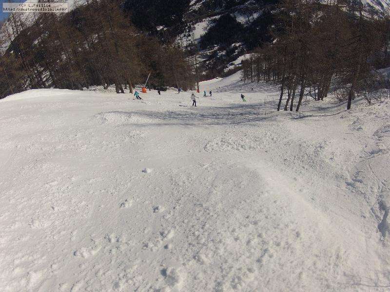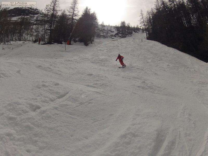 Et bien, bonne surprise : non seulement la piste a été bien préparée, y compris dans le fameux mur où les dameuses sont passées, mais même le hors piste est très très plaisant. Pas la glace pressentie, pas encore la soupe prévisible ...