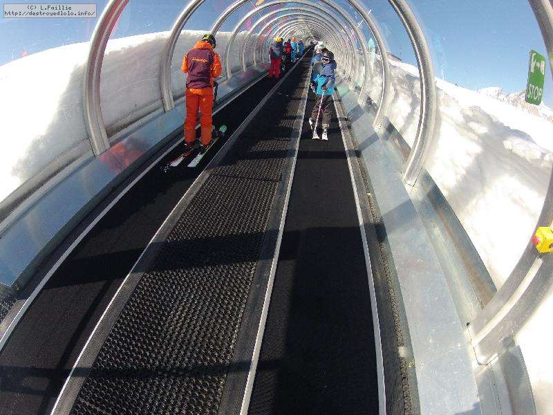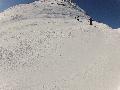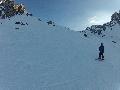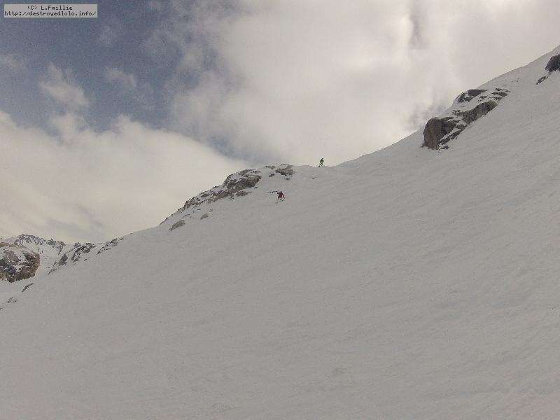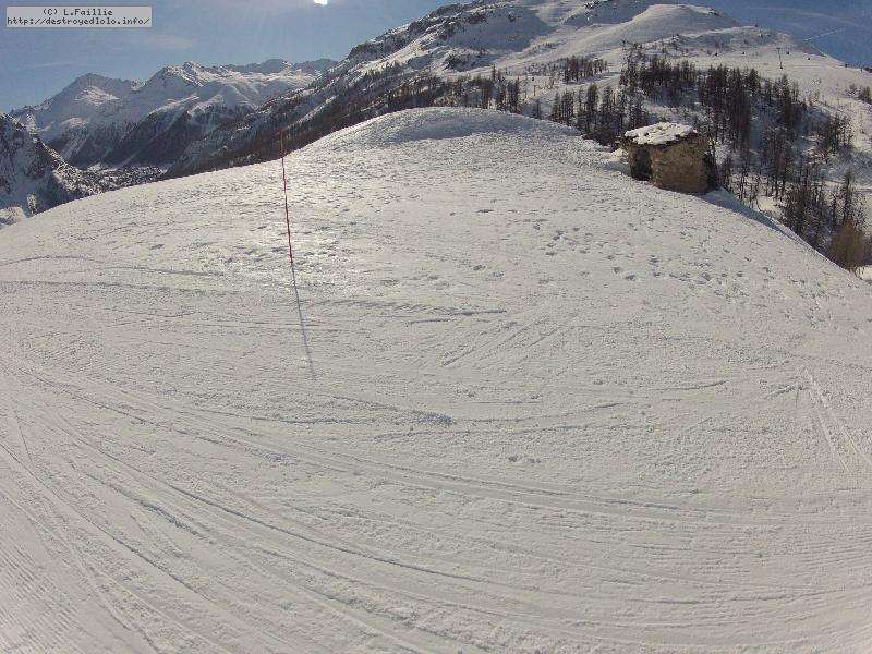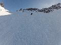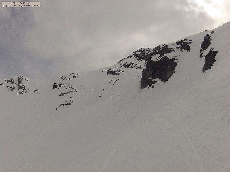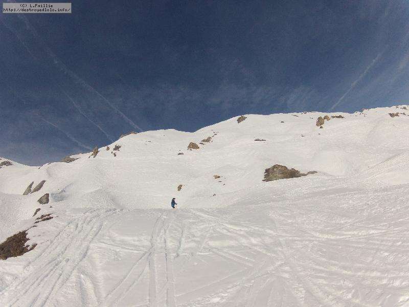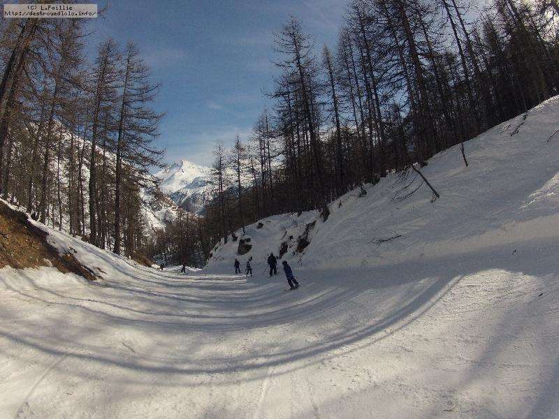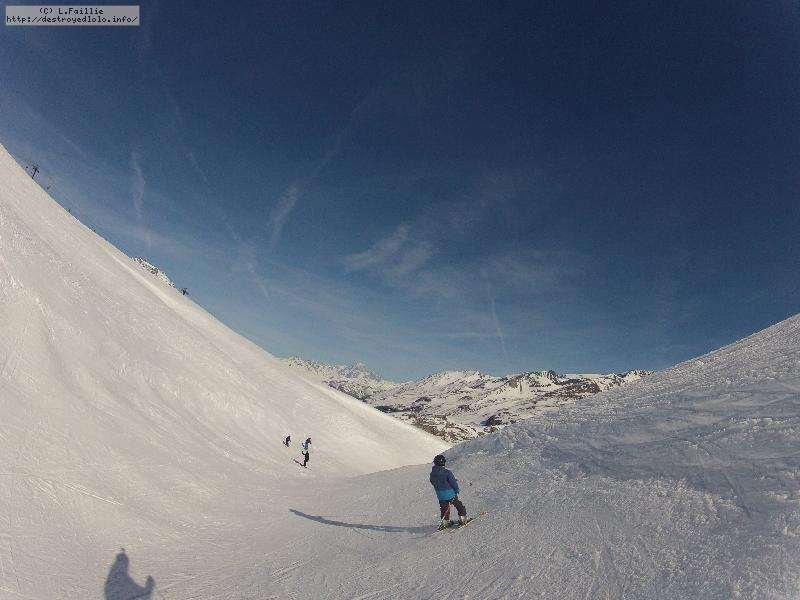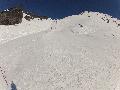 Direction "Signal", une grande rouge rectiligne et bien pentue : pas grand intérêt ... Quittons-la pour prendre le goulet lui aussi relativement pentu qui se trouve sous le télésiège Pyramide : une hors-piste très couru.