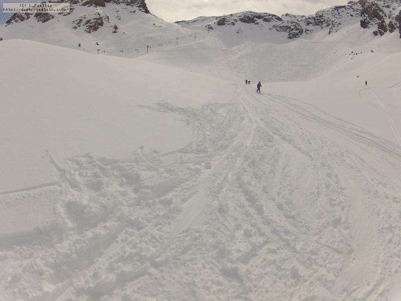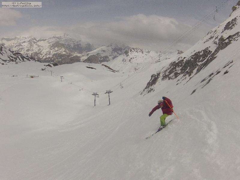 Toujours aussi beau et aussi chaud : direction Val D'Isère avant que la soupe ne gagne trop les pistes les plus basses. Surprise, pour une fois, Trifollet est ouverte et praticable.