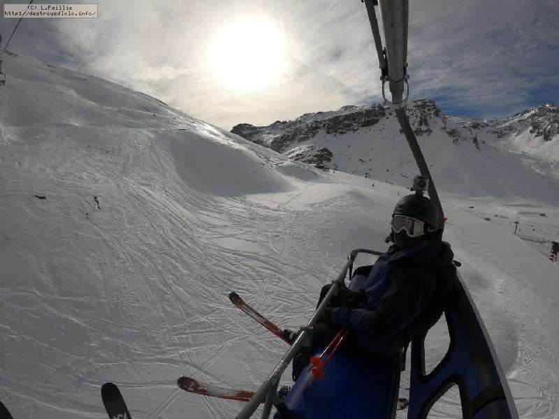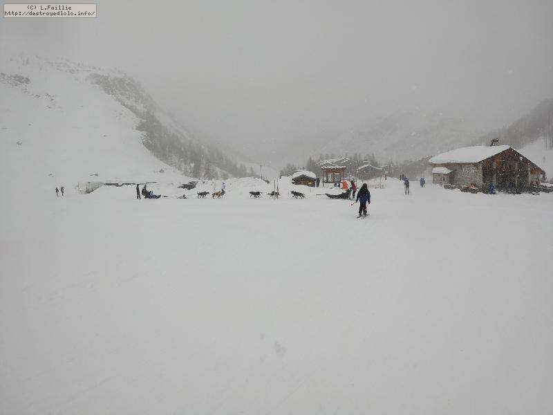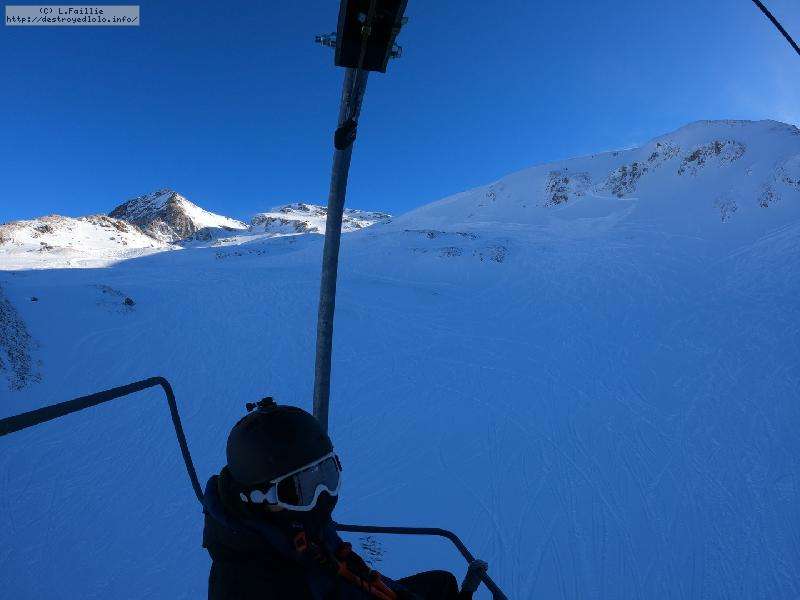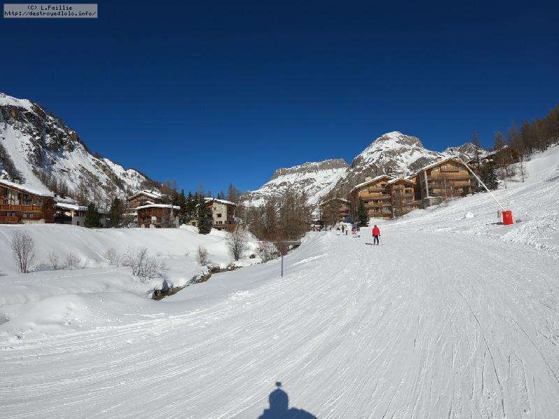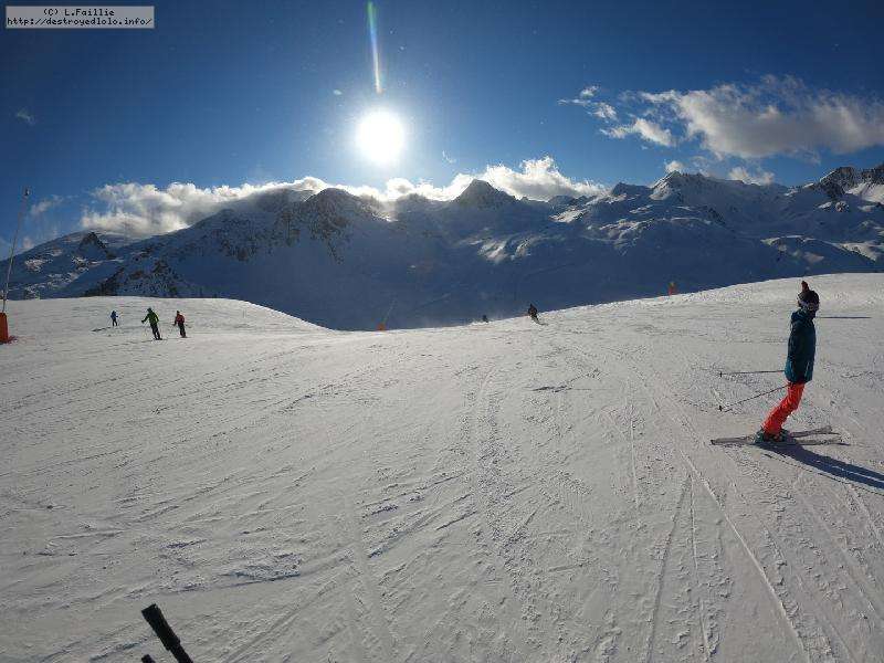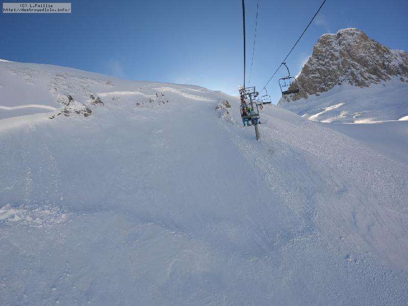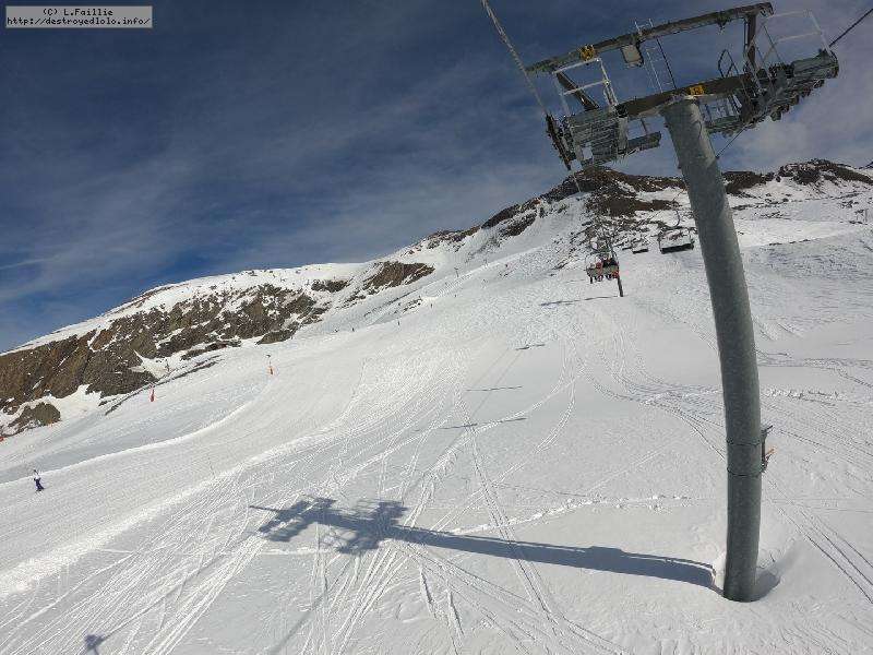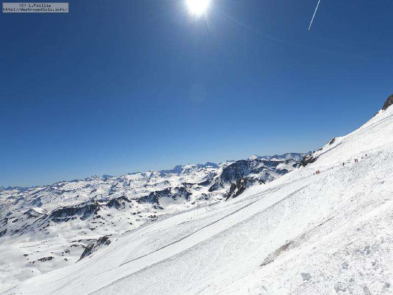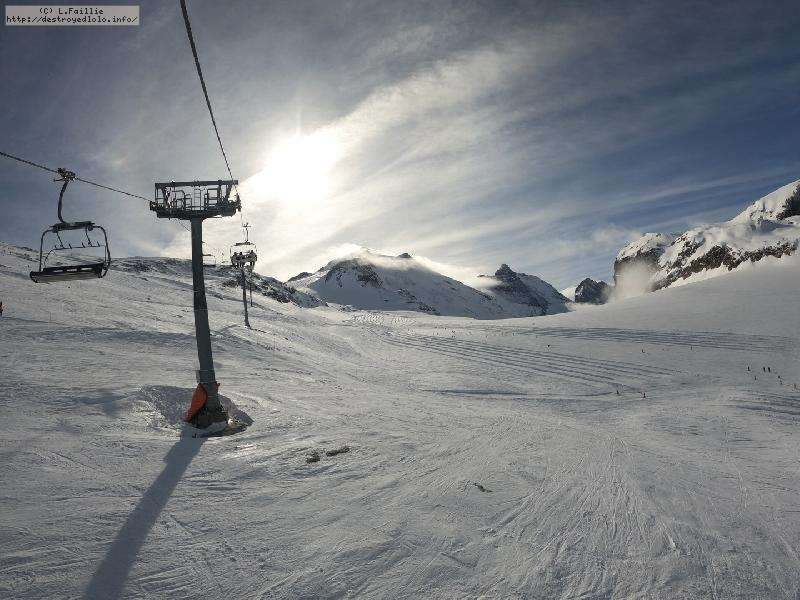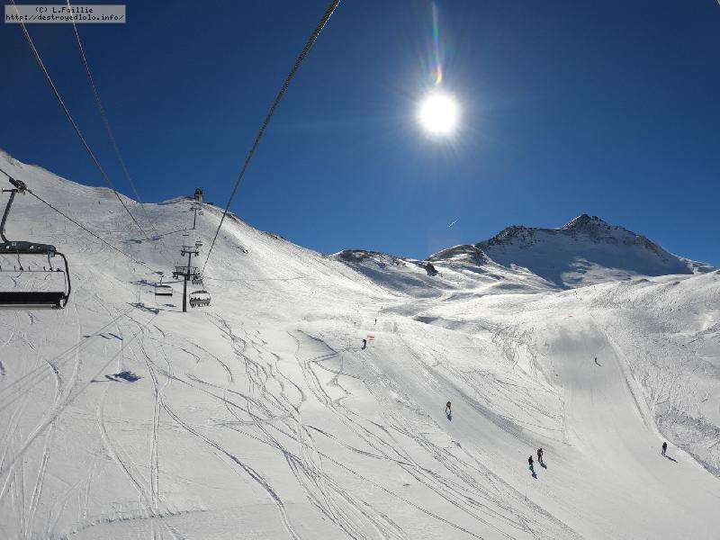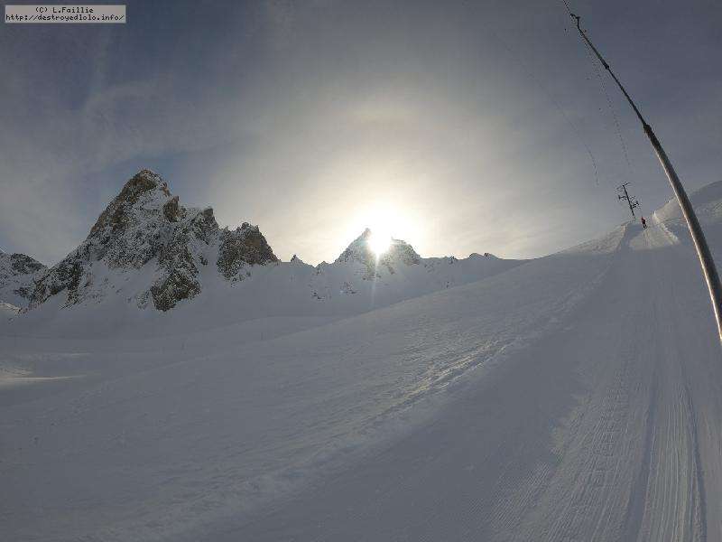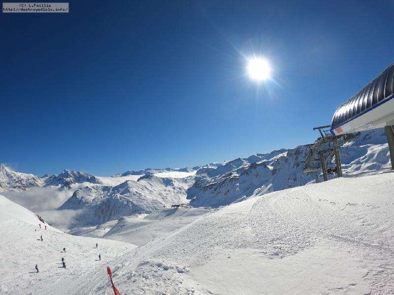 Enfin le vent se calme : le glacer ouvre ... sauf que vu le monde, on fera l'impasse : pas envie d'attendre 40 minutes alors qu'il n'est même pas possible de profiter des hors-piste vu que les ratraks ont tout massacré. On descend donc pas Génépi (quel beau nom quand même) pour basculer sur Val d-Isère.