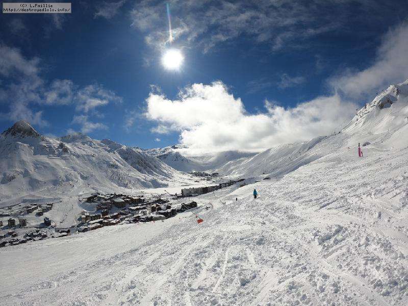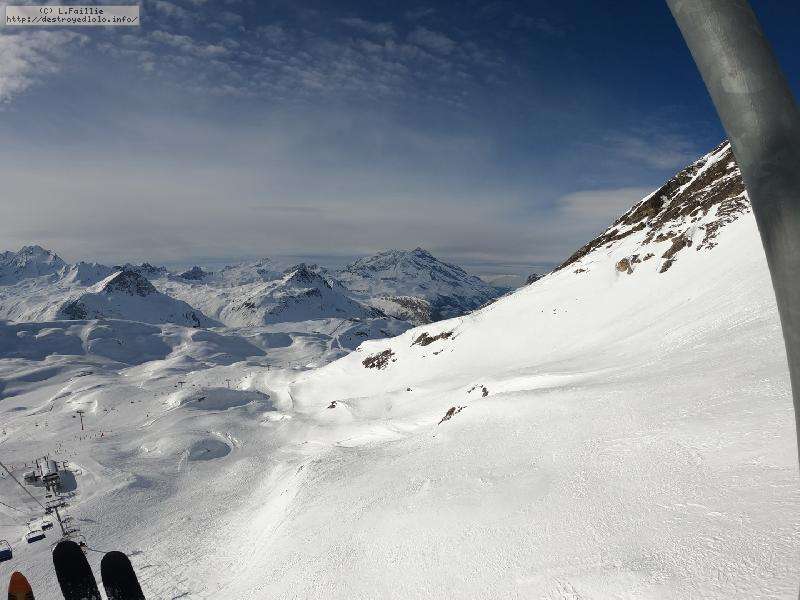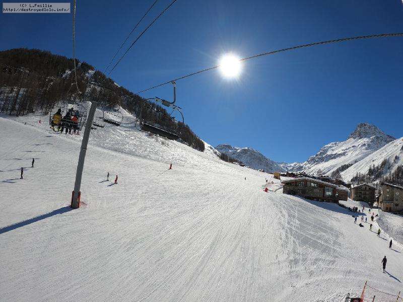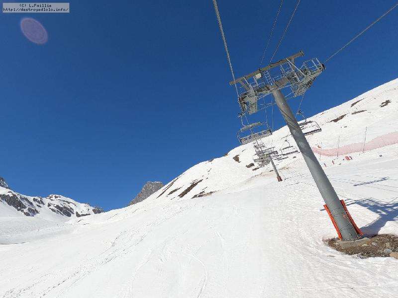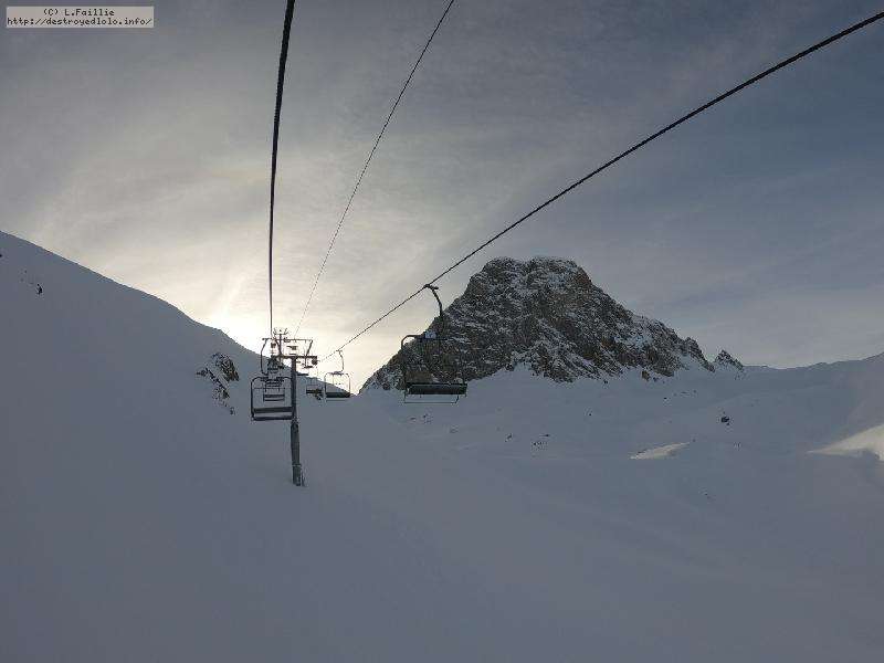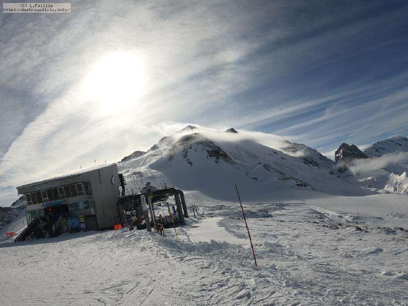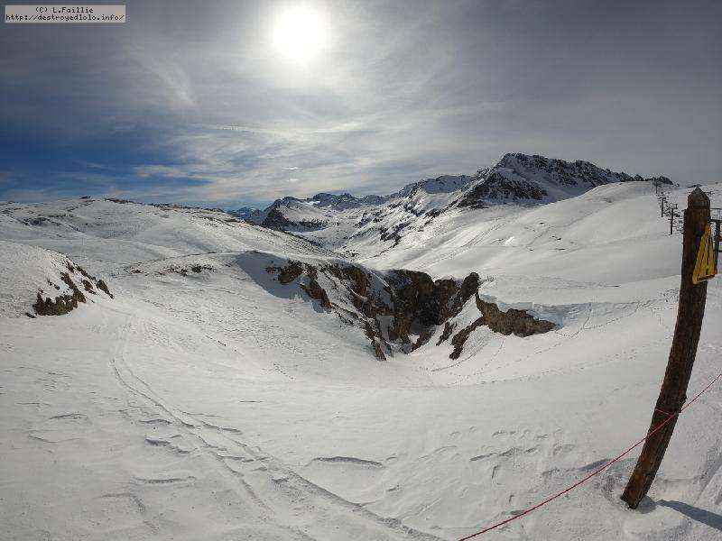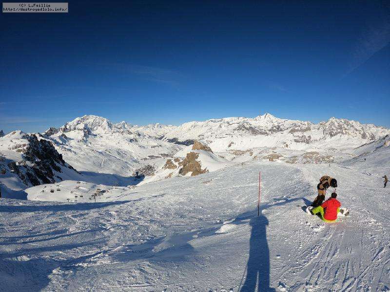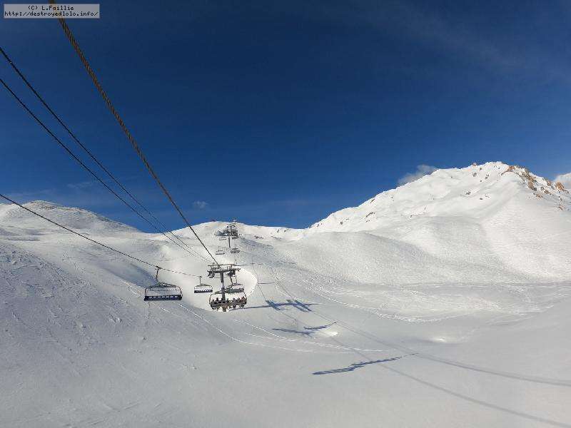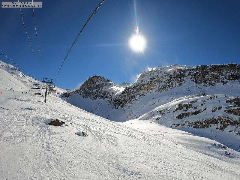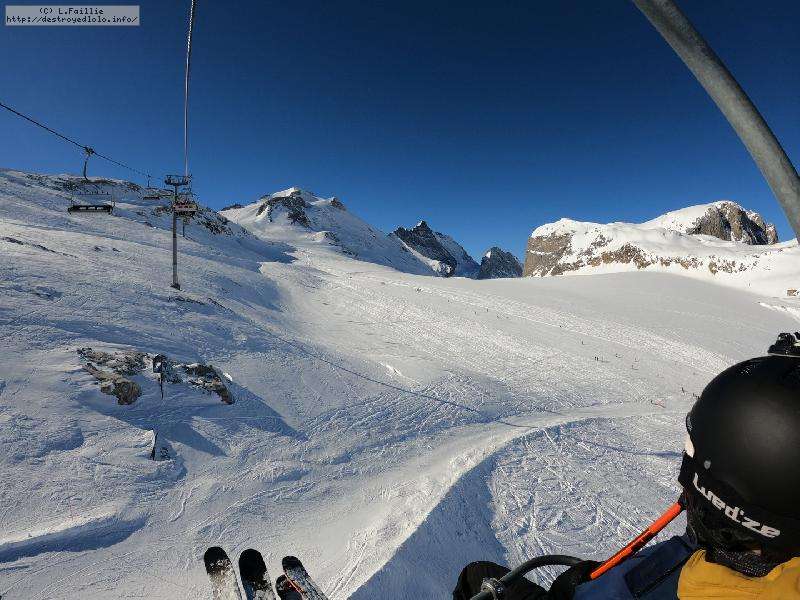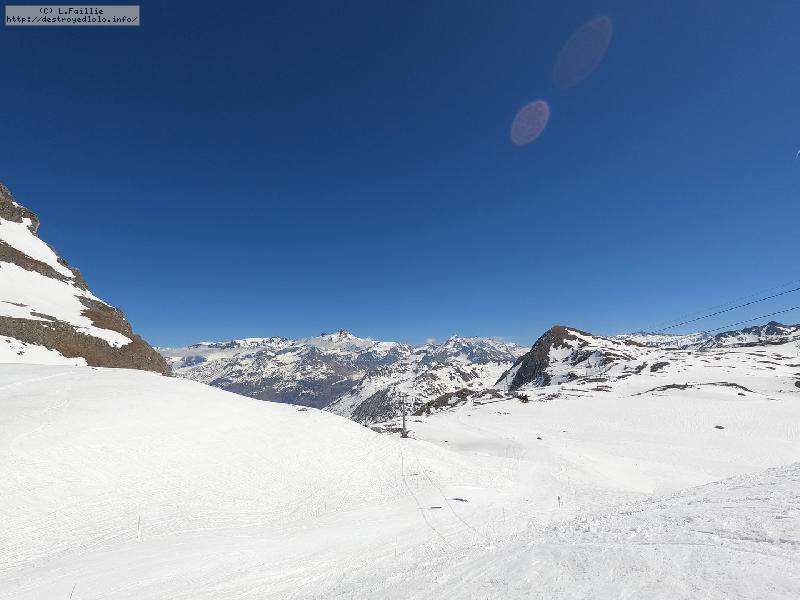 Enfin le vent se calme : le glacer ouvre ... sauf que vu le monde, on fera l'impasse : pas envie d'attendre 40 minutes alors qu'il n'est même pas possible de profiter des hors-piste vu que les ratraks ont tout massacré. On descend donc pas Génépi (quel beau nom quand même) pour basculer sur Val d-Isère.