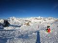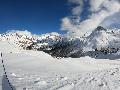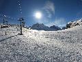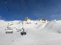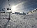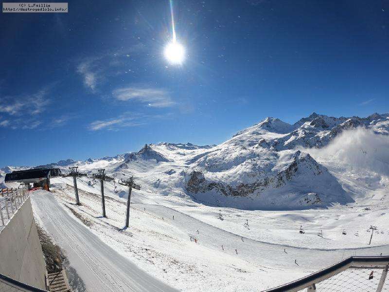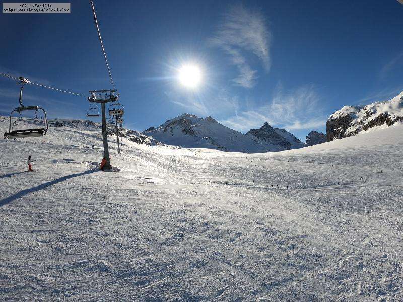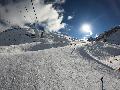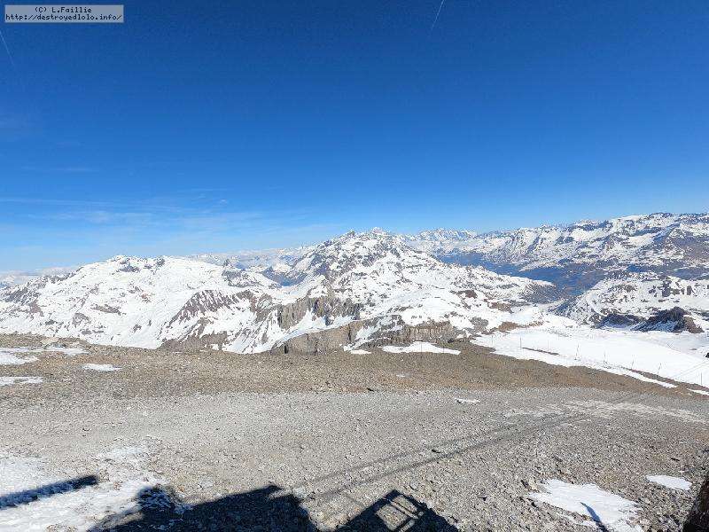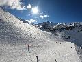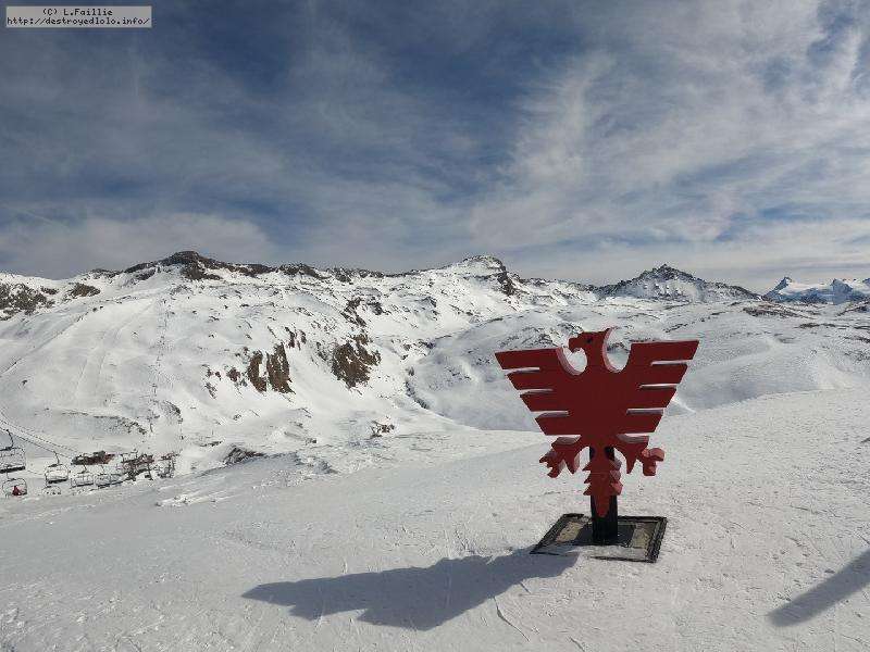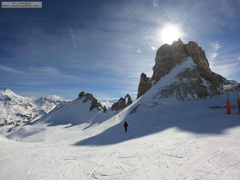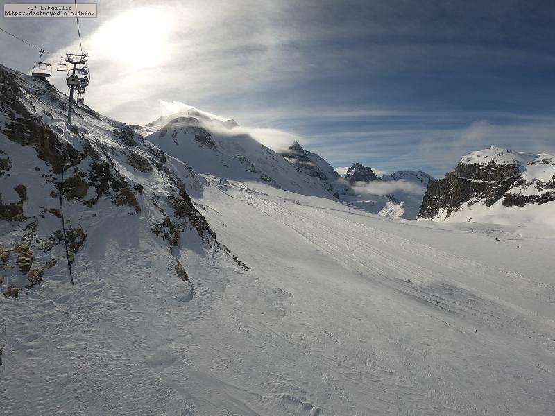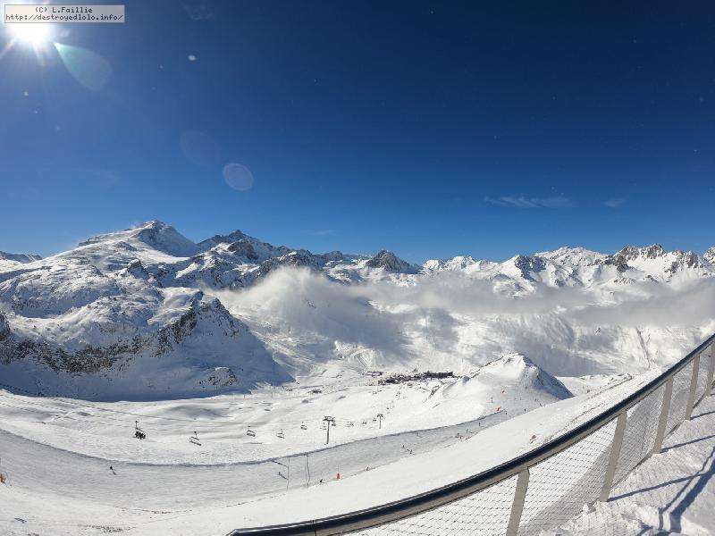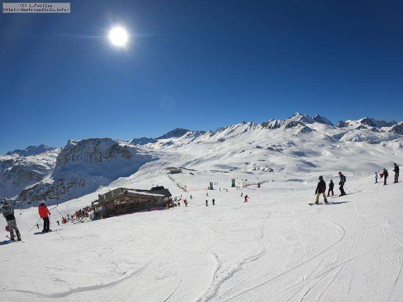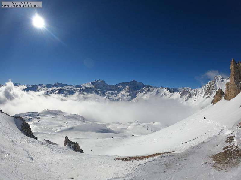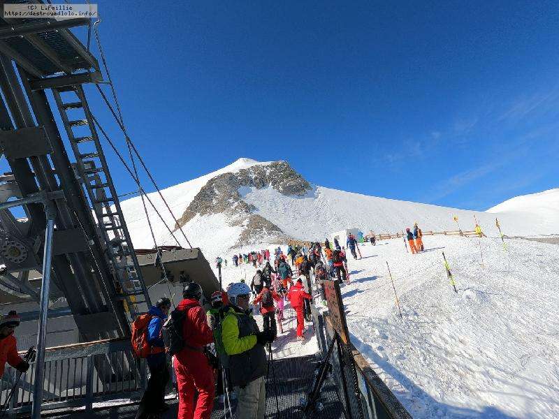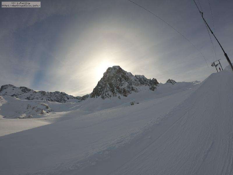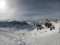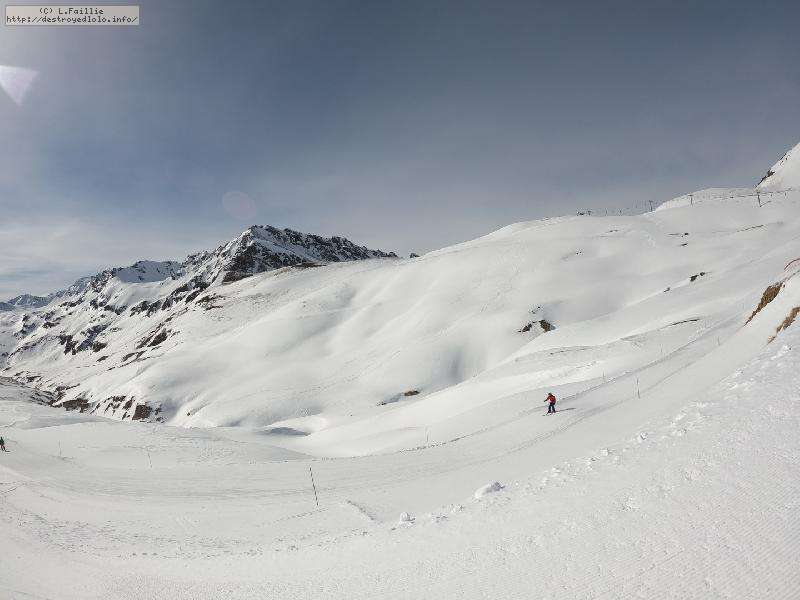 Enfin le vent se calme : le glacer ouvre ... sauf que vu le monde, on fera l'impasse : pas envie d'attendre 40 minutes alors qu'il n'est même pas possible de profiter des hors-piste vu que les ratraks ont tout massacré. On descend donc pas Génépi (quel beau nom quand même) pour basculer sur Val d-Isère.