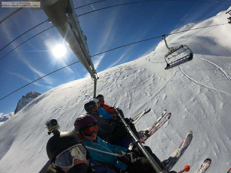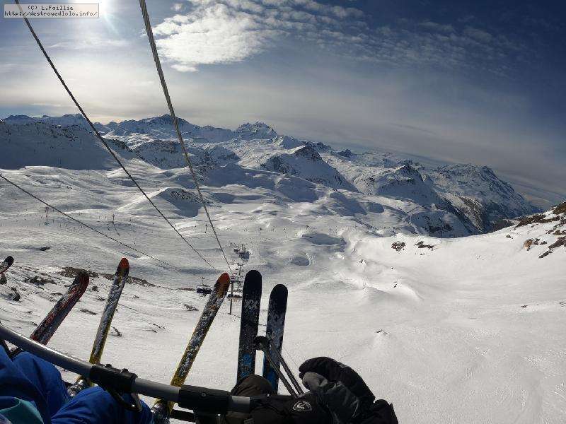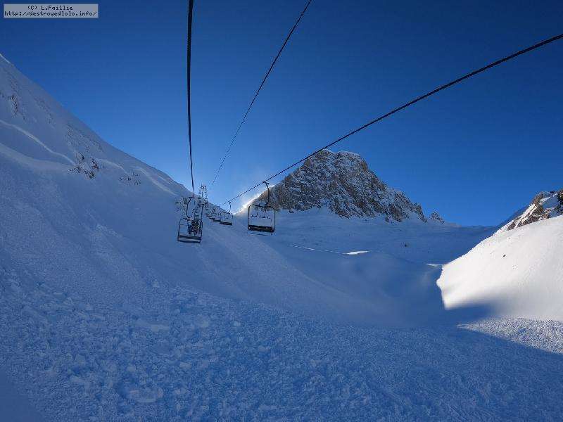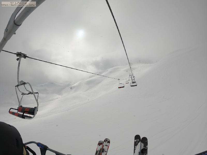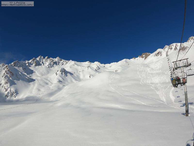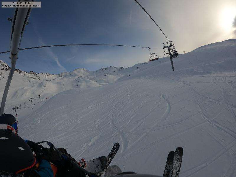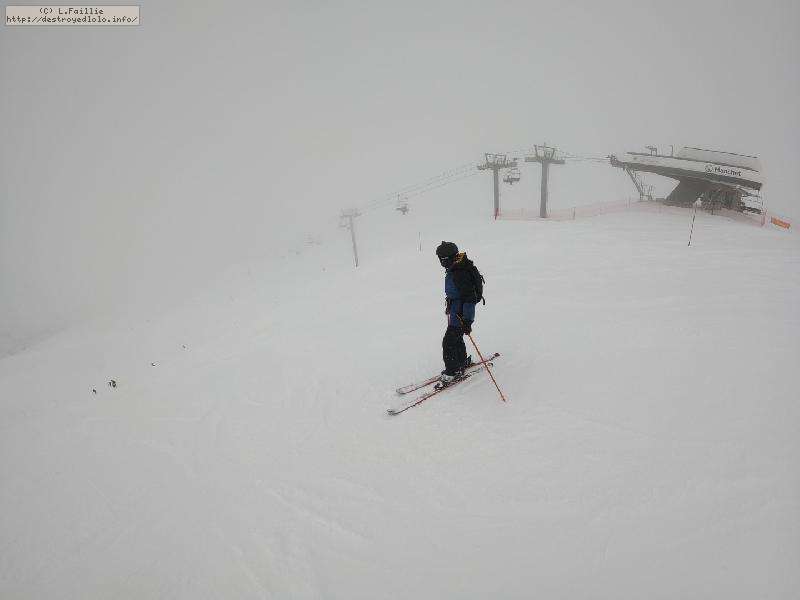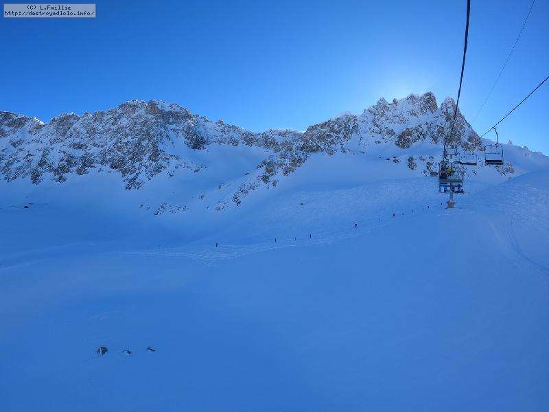 Après une telle tempête, on a peur que tout soit soufflé et massacré ... mais non, y'a une peuf pas croyable qui n'attend que nous. Sauf que la majorité du domaine est encore fermée pour sécurisation, ce qui crée des queues pas possible sur les remontées du front de neige. Nous ne commençons réellement à skier à 10h00. Direction le Col de Palet.