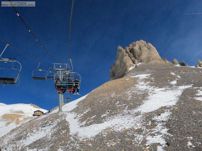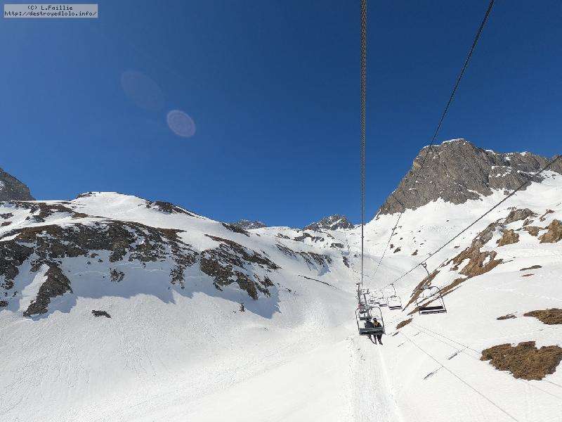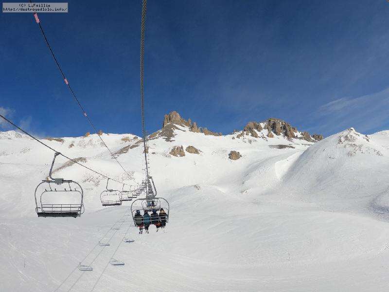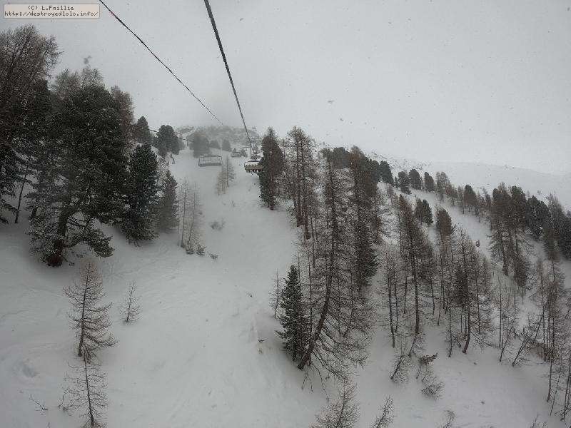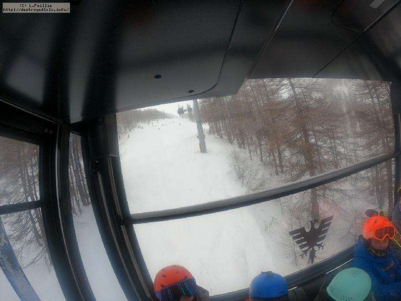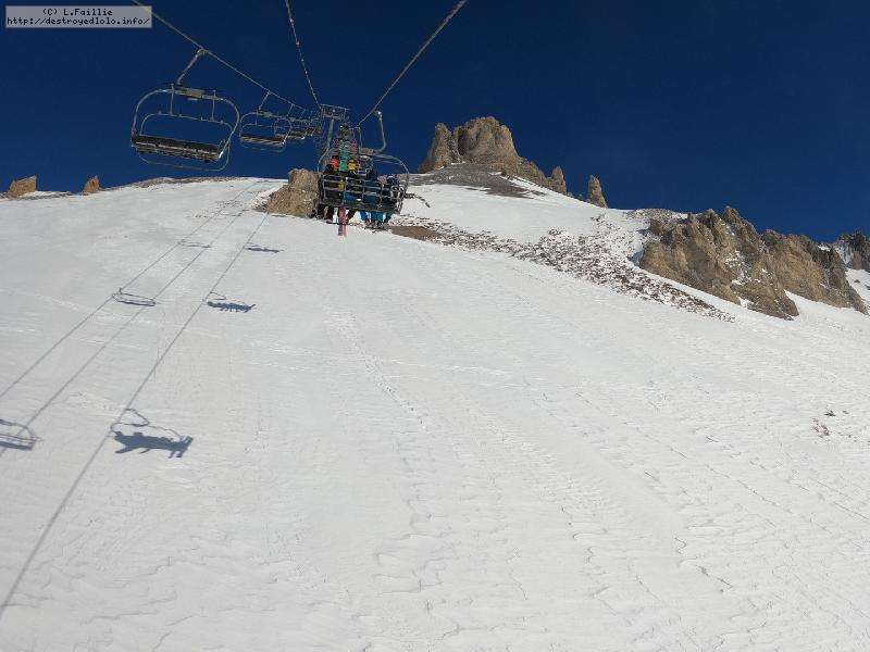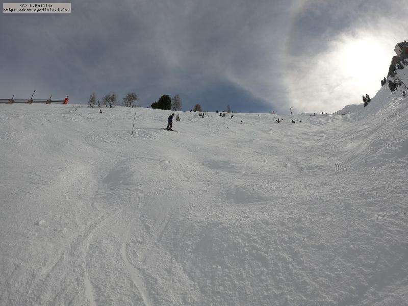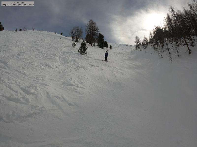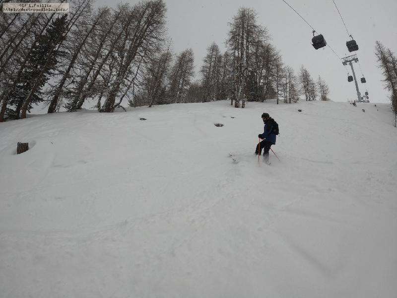 Direction Pissaillas de l'autre côté du domaine ... enfin presque, car lors de la 1ʳᵉ montée sur les Tufs, un de mes bâtons décide de se faire la malle. Bon, comme prévu, le hors piste sous la remontée est bien pourri : complétement verglacé. Mais le bâton est sauvé.