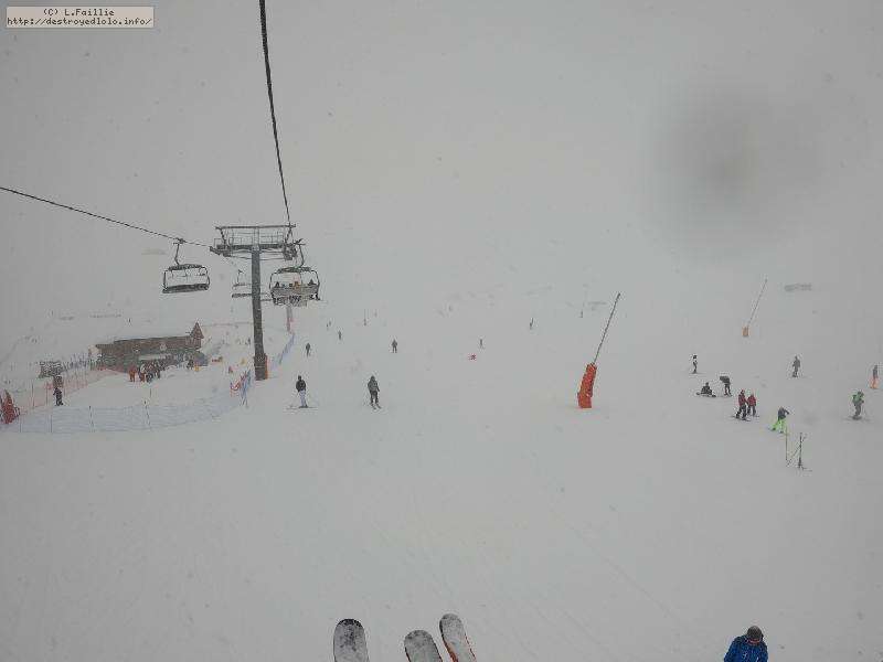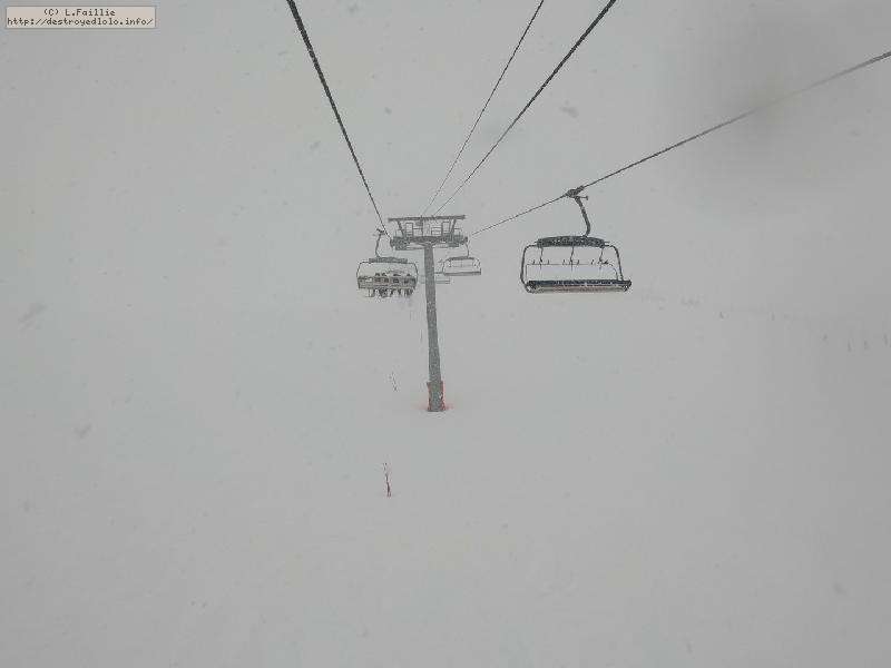 Météo totalement exécrable toute la journée : bourrasque de neige, mais surtout jusqu'à 140 km/h de vent. Seules 2 remontées ouvertes ... mais espérons que ce soit la neige de demain.