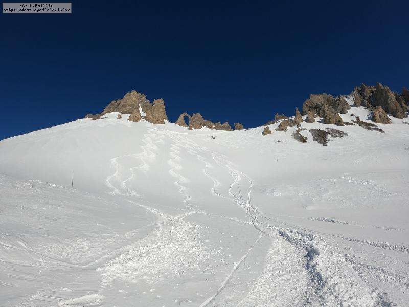 La première descente sert surtout de repérage, car la neige est un peu traitre avec alternance de bonne peuf profonde et de glace à vif.