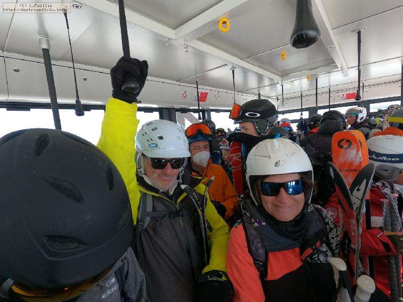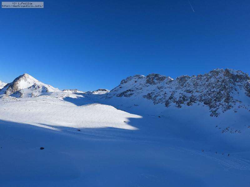 Tentative par l'Épaule du Charvet mais elle est tant verglacée (y compris sur les hors-pistes) qu'il n'y a strictement aucun plaisir de glisse. Bascule donc sur "Santons" noire de touristes, mais bosselée donc tellement plus plaisante à skier.