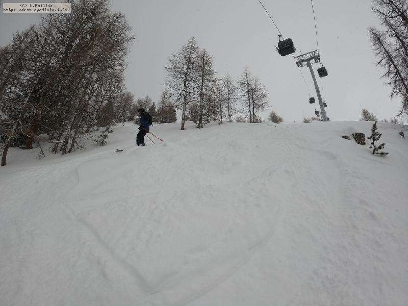 Par contre, dès que l'on montre, ça redevient humain (en tout cas en dehors des pistes, car ces dernières restent bien verglacées à cause du passage des touristes) avec même l'excellent hors piste sous Tommeuses.