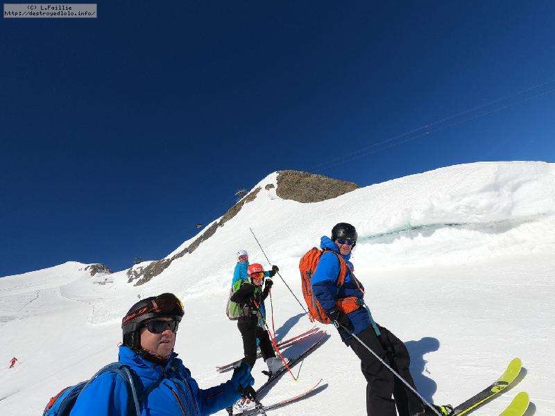 Après mangé, nouvelle tentative d'aller sur le glacier ... mais avec le même résultat. Du coup, on redescend sur génépi pour y faire ses hors-pistes : peuf mais décevante car les endroits les plus pentus sont croutés. Mais jolie balade.