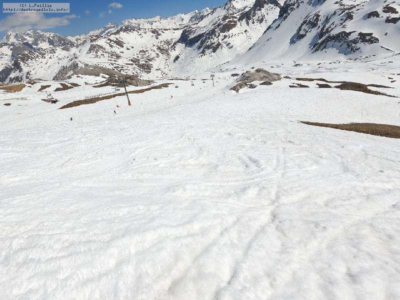 Il n'y a pas eu beaucoup de précipitation et en plus, il a fait très chaud avant notre arrivée : nous nous attendons donc au pire. Et bien nous le trouverons en descendant à Val d'Isère.