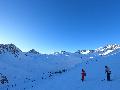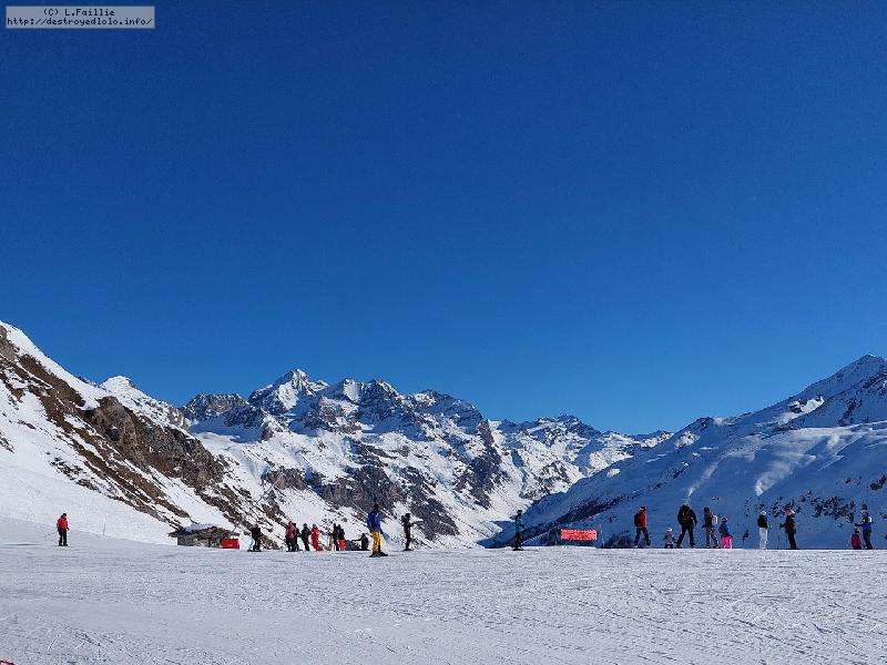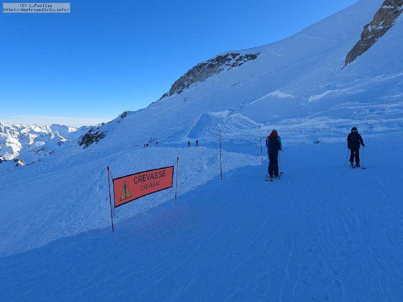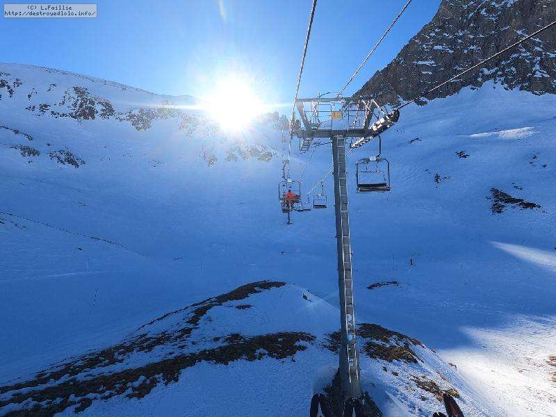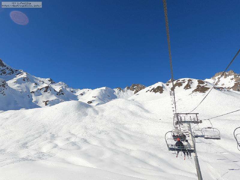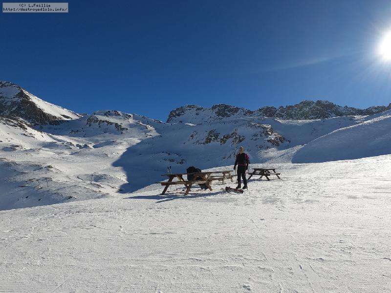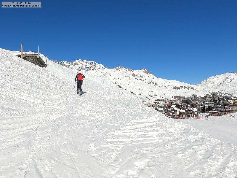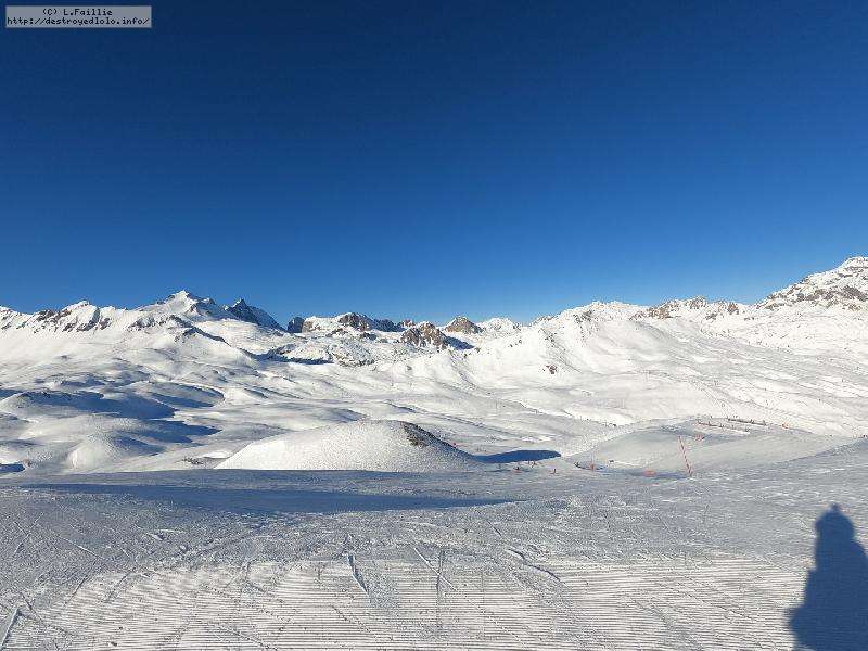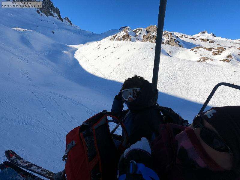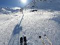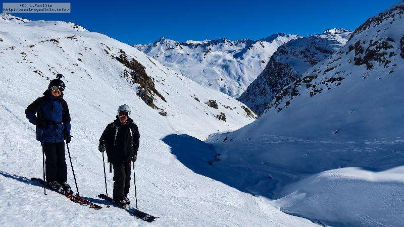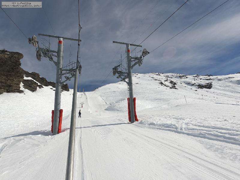 Direction Tignes le Lac en passant par la comble folle : malheureusement par les pistes, car, trop exposé, le hors piste n'est que grattons indigestes et beaucoup trop de cailloux. La vertigineuse noire qui suit n'est qu'une vaste patinoire comme à son habitude ... mais permet d'atteindre l'aiguille Persée puis on revient sur la valeur sûre : le col des Ves, excellent bien sûr !