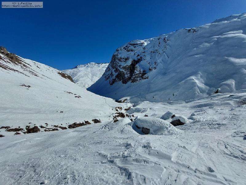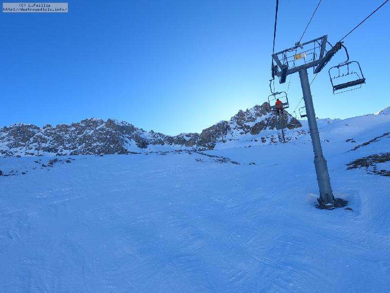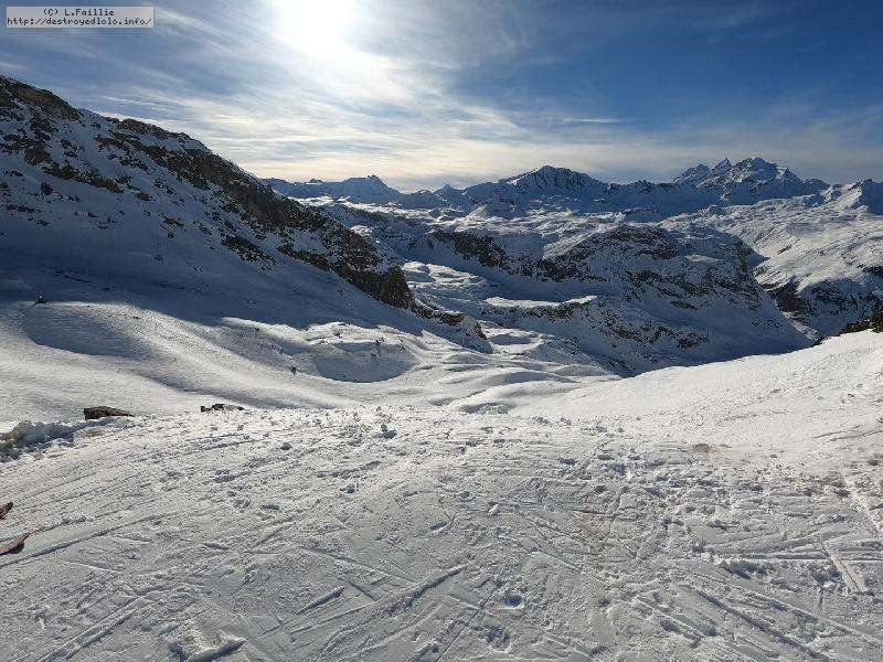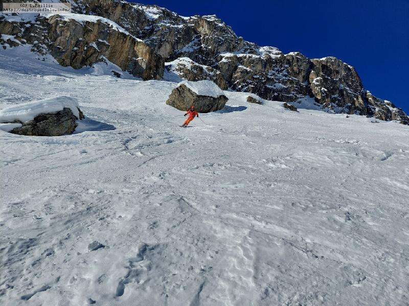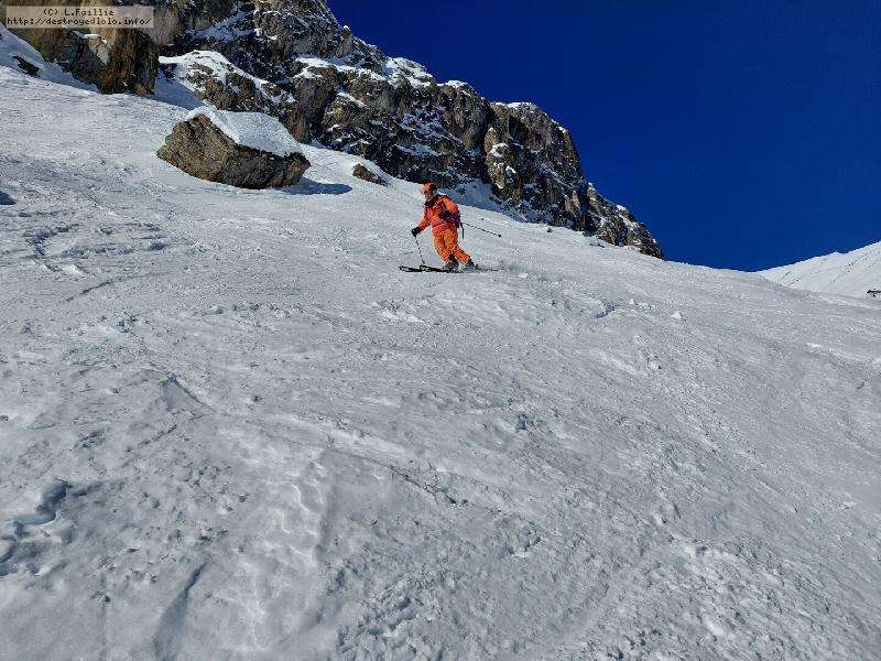 Retour côté Solaise avec une grosse éclat habituelle sur le hors piste à côté de Cugnai.