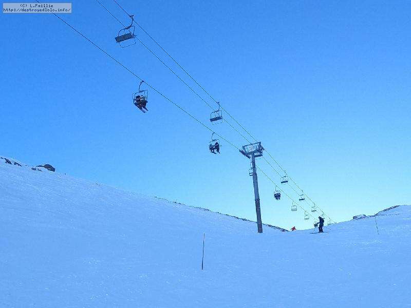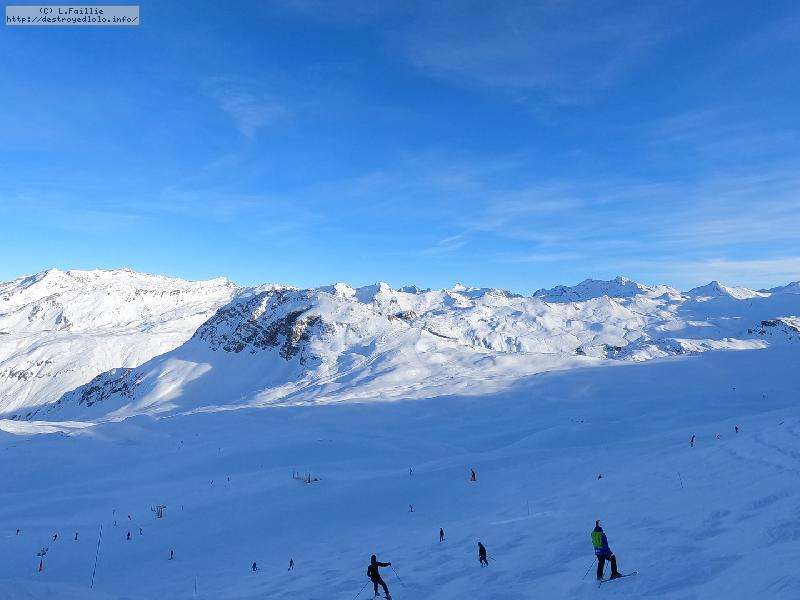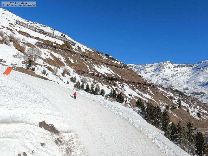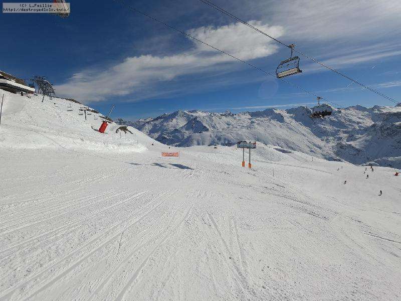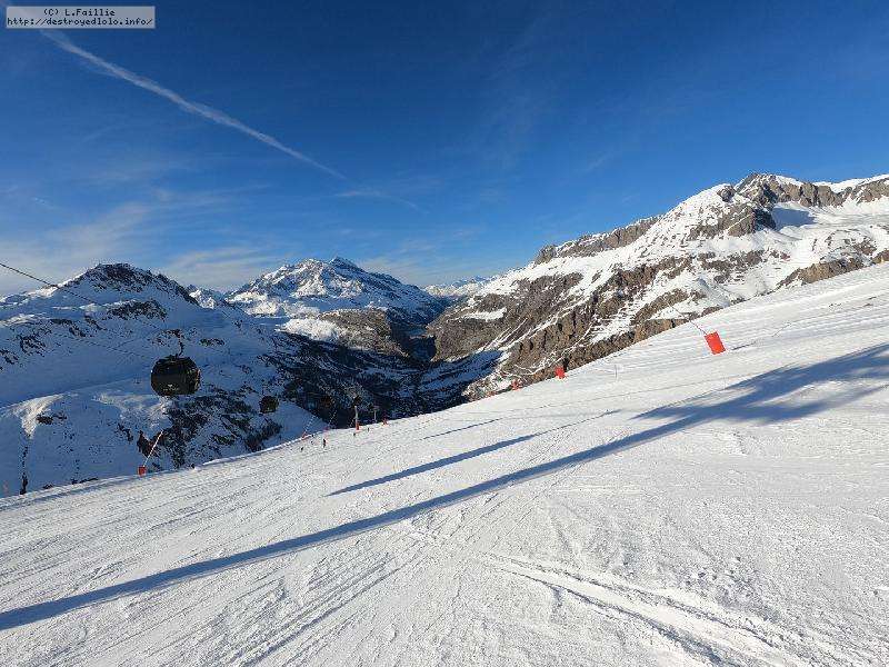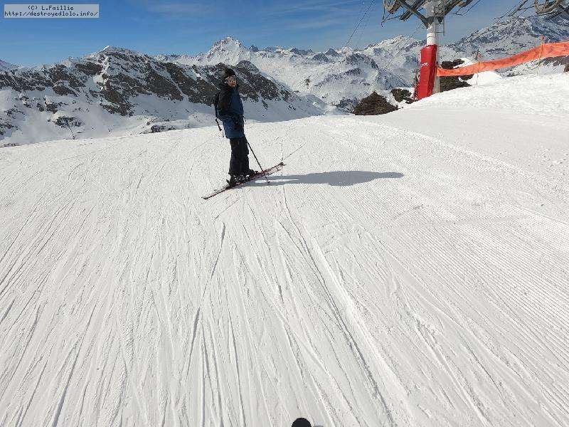 Descente par Double M puis les Tufs pour faire le hors piste sous Tomeuses. La neige est dure, mais bien travaillée et donc, in fine, agréable à skier en ce début de journée. Comme la veille à ValTho, c'est pas mal trop non plus en hors piste si on reste sur les pentes non exposées où sur les traces pré-existantes.