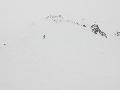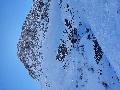 On grimpe le long de la pente entre la Double M et les Clarines ... la neige est très variées allant d'un plaisant "compacte" à du moins bon (voir inquiétant) "soupe" et "glace".