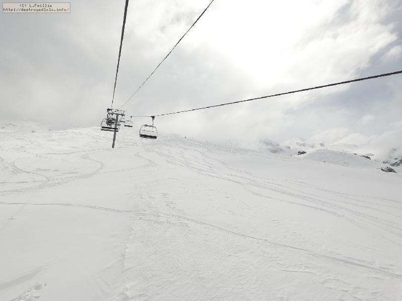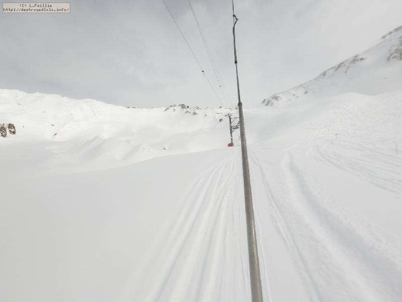 Ensuite, le cracra revient, mais on garde quand même un peu plus de visibilité que le matin, ce qui permet de bien nous finir en hors piste sur Tignes le Lac.