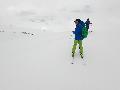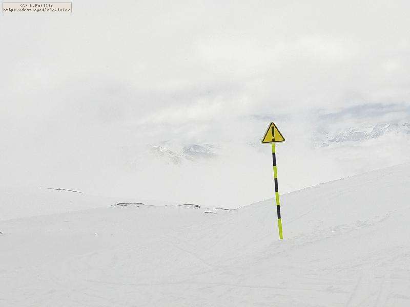 Alors, on se lance plein d'optimisme dans le fameux hors piste de Pissaillas ... las, après 200, les nuages sont montés, ON NE VOIT STRICTEMENT RIEN. Au pif en suivant les quelques traces qu'on devinent ... pas très sécurisant tout ca !