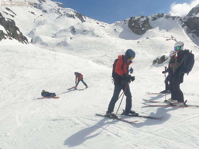 La fin de cette excellente journée se passera toujours sous un grand soleil radieux avec très peu de pistes, mais beaucoup de hors pistes ... parfois aléatoires