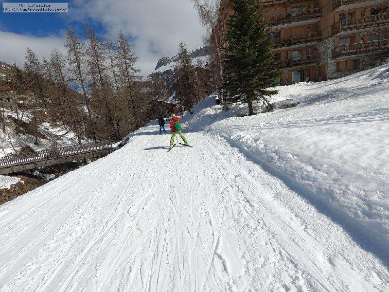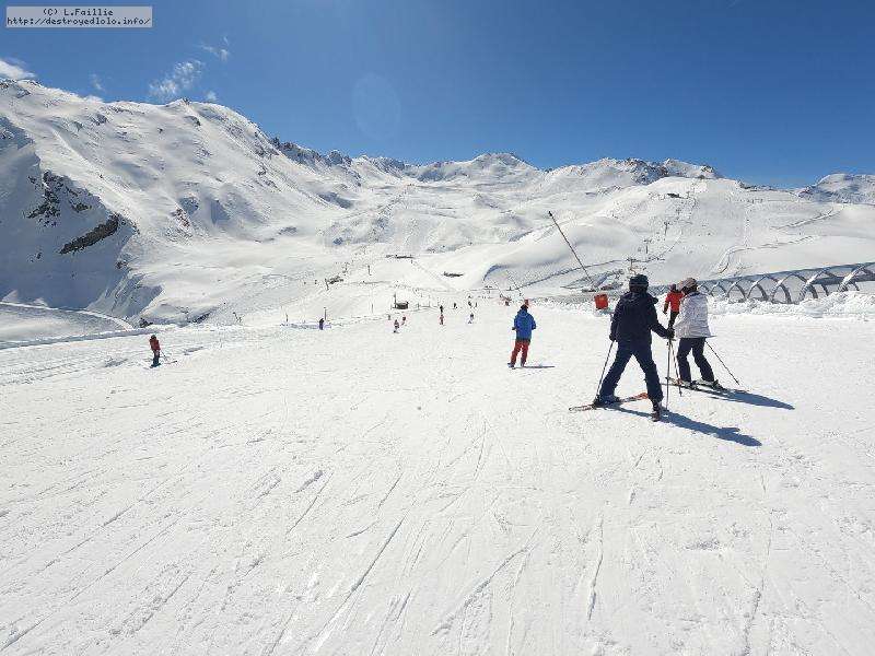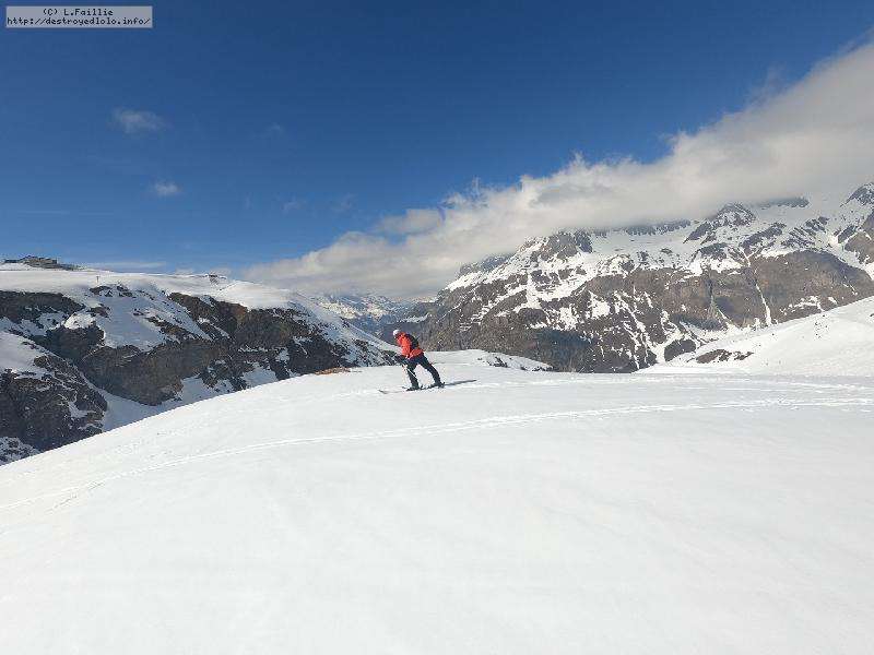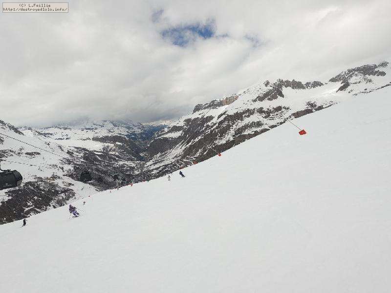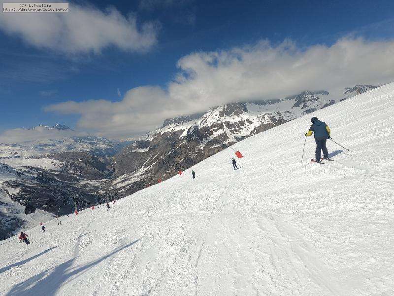 Première descente par Santon : la neige reste encore dure mais mieux préparée que l'avant veille à Méribel, bonne glisse.