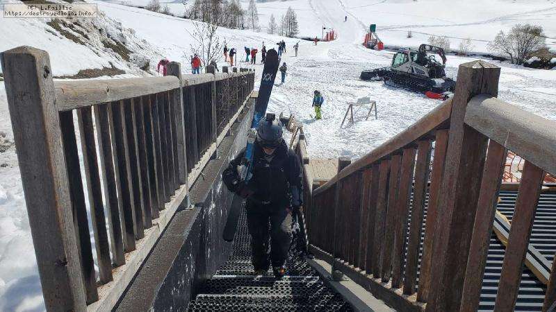 Sur ce beau constat, on tentera de descendre jusqu'en bas par la piste L, étrangement ouverte (d'habitude, elle est fermée lorsque le risque est fort), puis mangard ... mais c'est carrelage (et pas très plaisant) l'une comme l'autre.