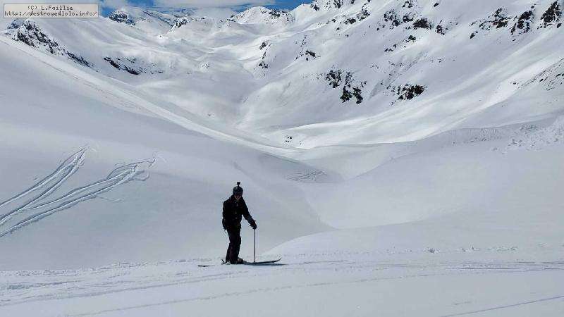 Le tour du Charvet : la neige est excellentissime sur le haut (vraiment, du velours), mais la toute fin pathétique ; on passe à travers des coulées et des avalanches pleines de terre, mais ça n'enlèvera pas le pied ressenti sur le haut. Rarement été aussi bon malgré toutes les fois où j'y suis passé.
