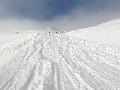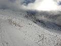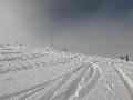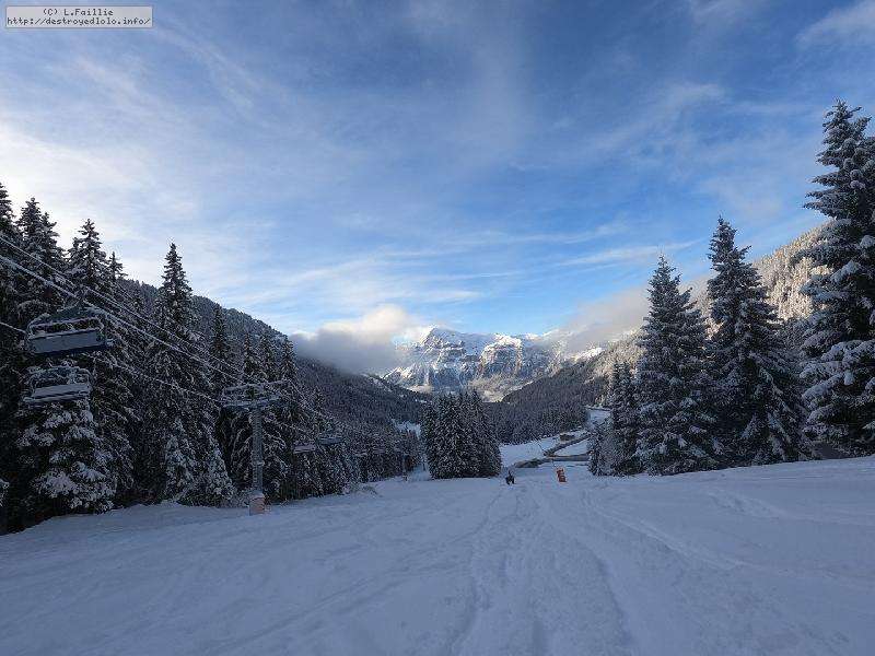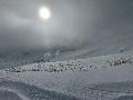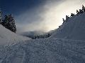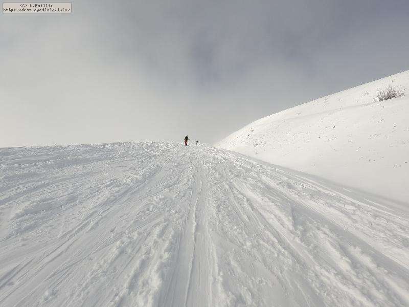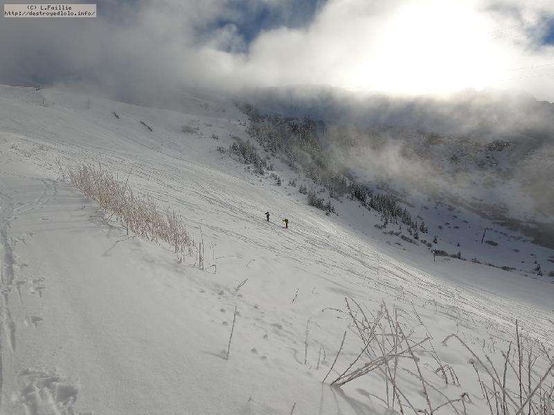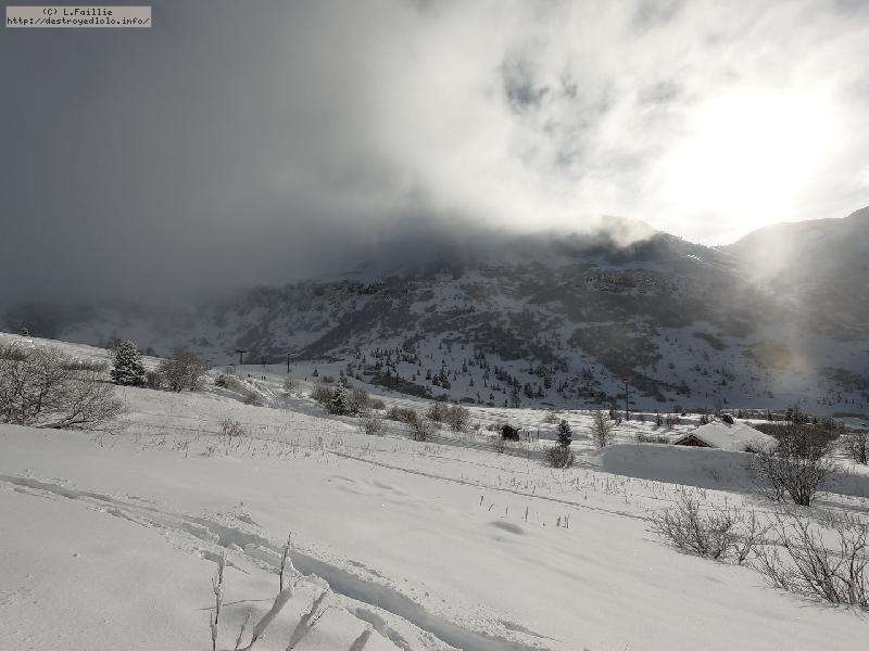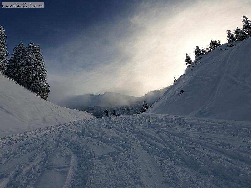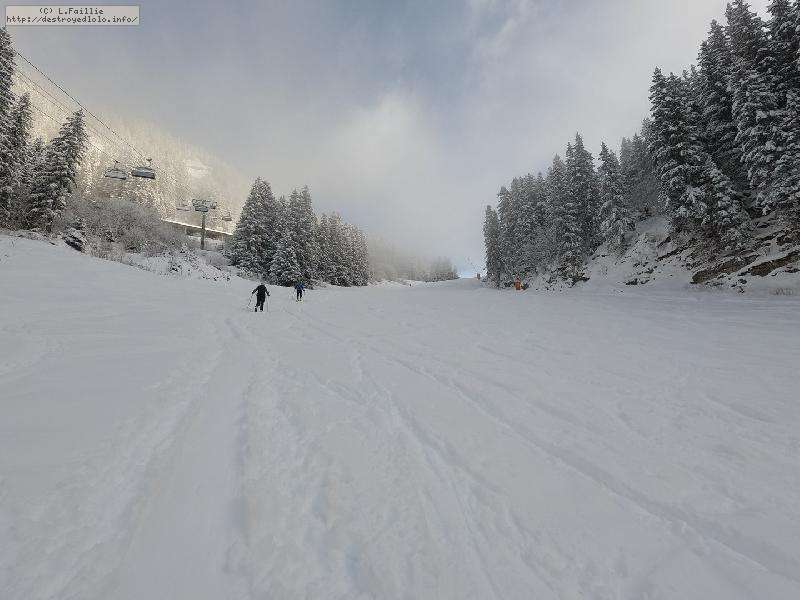Las ... si la peuf est bien là, on n'y voit strictement rien : le temps de se sustenter, les nuages se sont accrochés. Par sécurité, on redescend par la bleu plutôt que de profité d'une noire immaculée ...