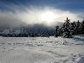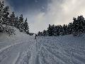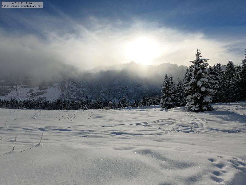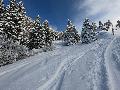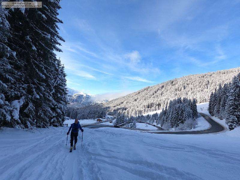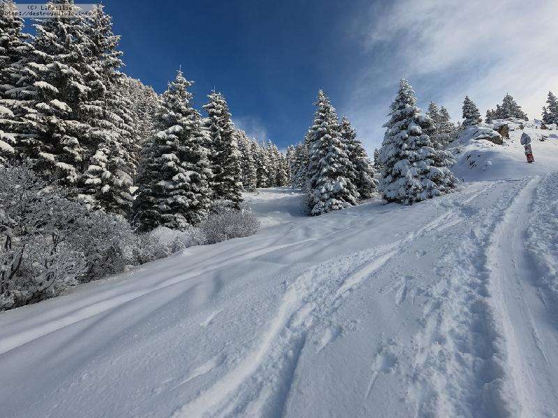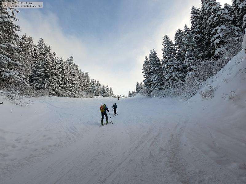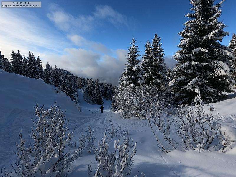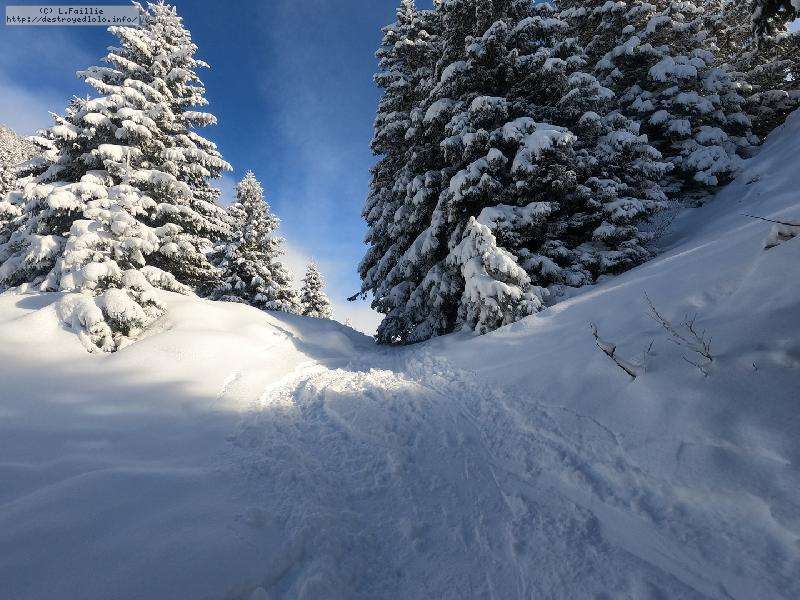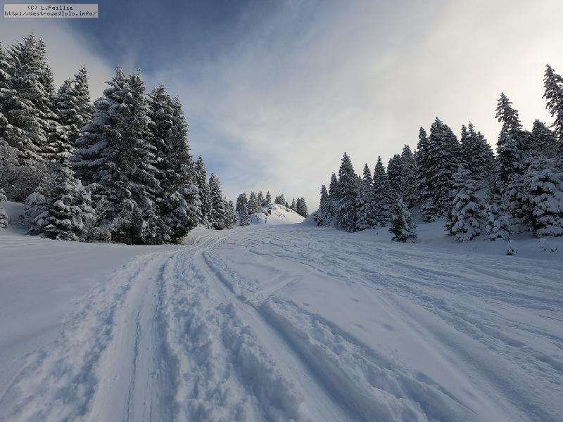Au débouché de la forêt, plutôt que de suivre la piste, je prends la petite trace qui bifurque dans les sapins sur la gauche : plus sauvage est plus joli.