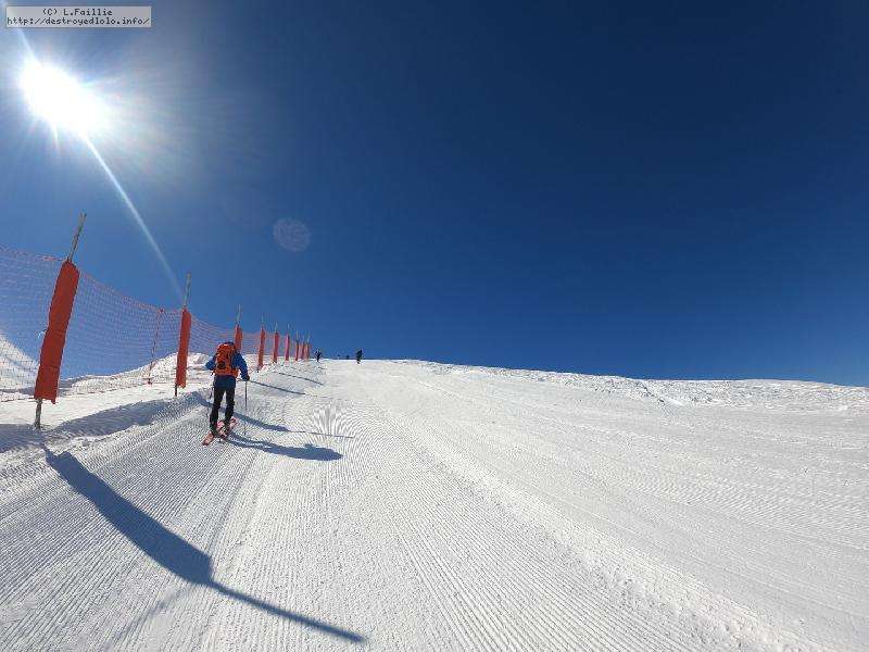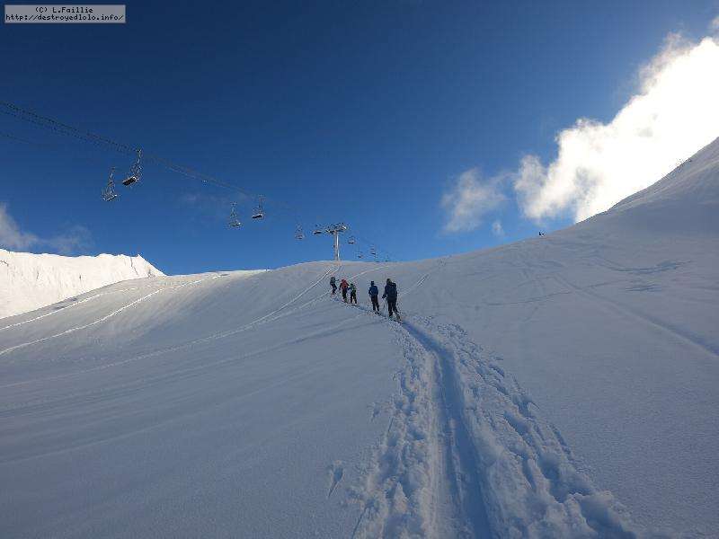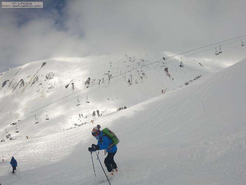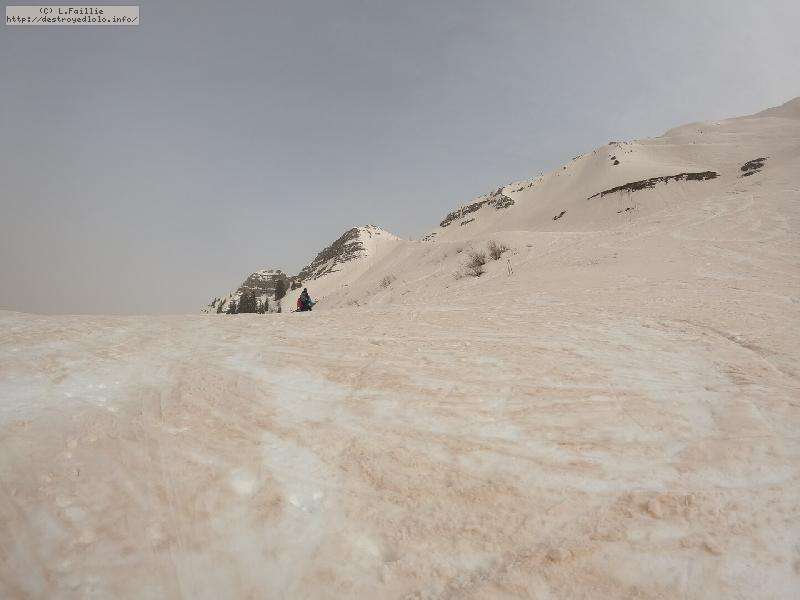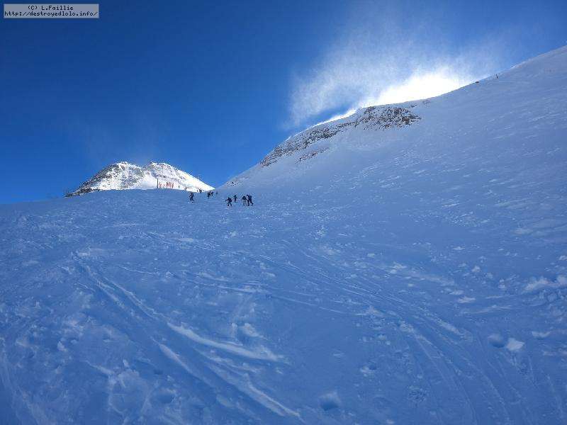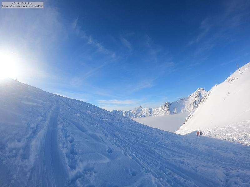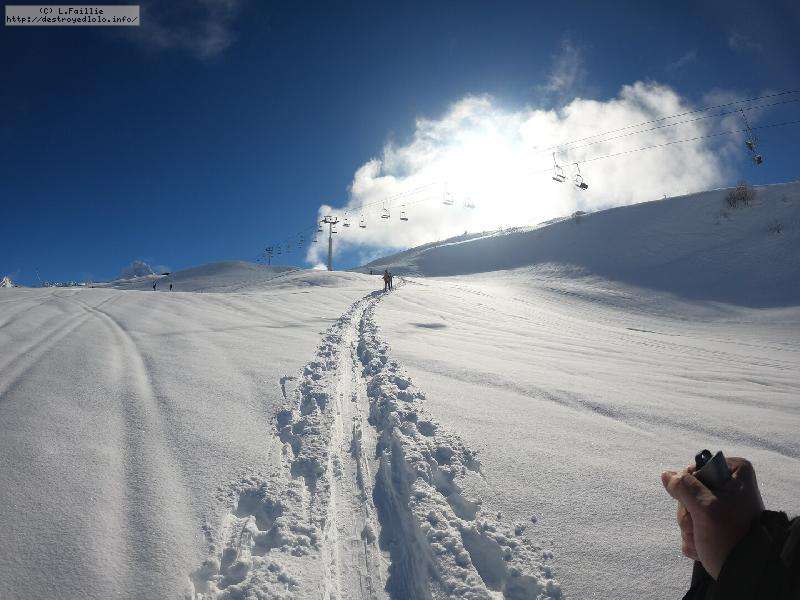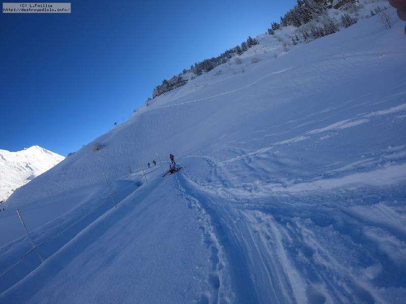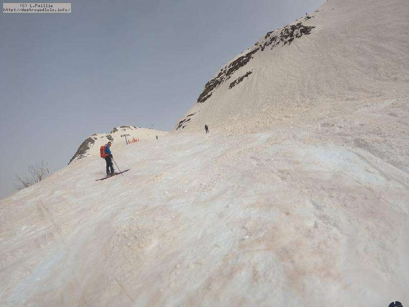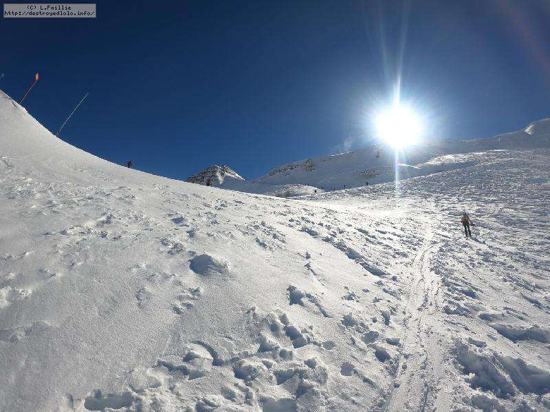 Le risque est faible, nous décidons donc d'aller profiter de la "FreeRide" qui n'est quasiment pas tracée. Par endroit, elle est un peu croûtée à cause du vent (comme on peut le voir au début de la vidéo) : il suffit de choisir sa trajectoire !