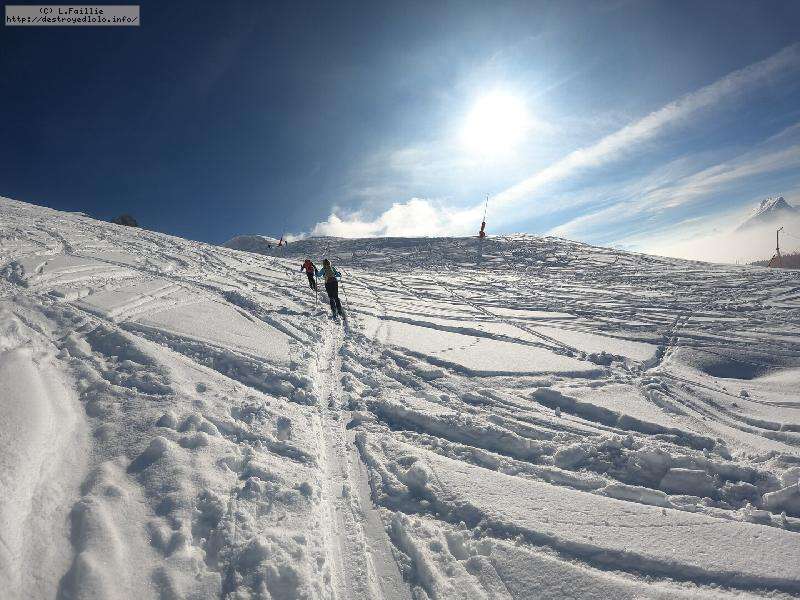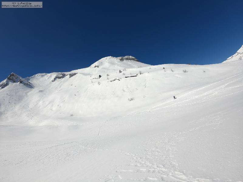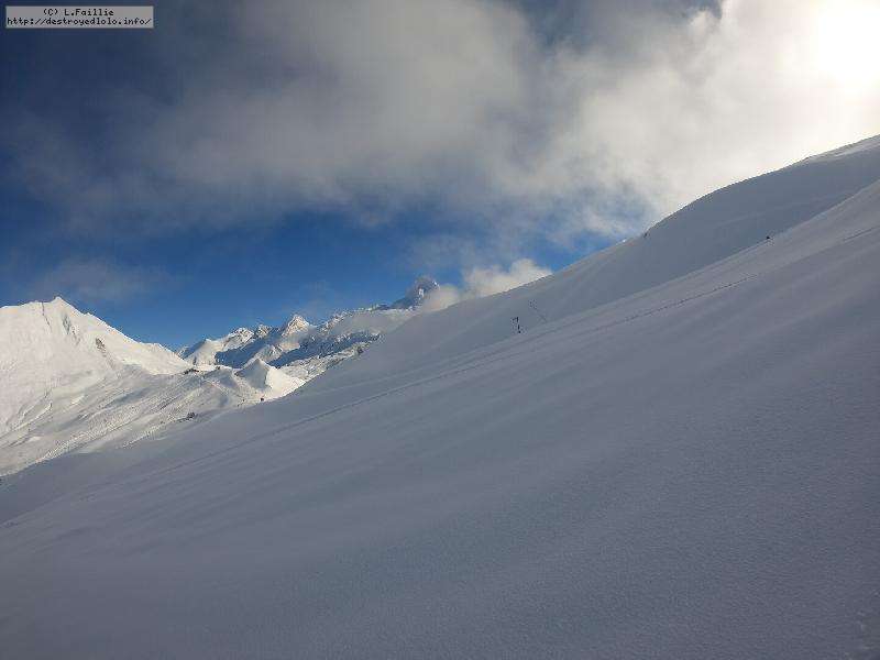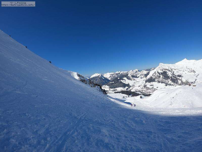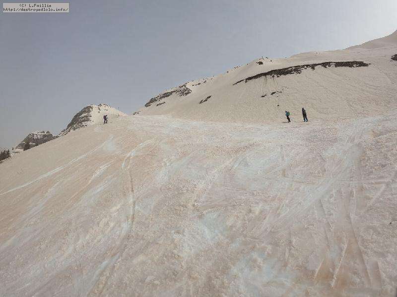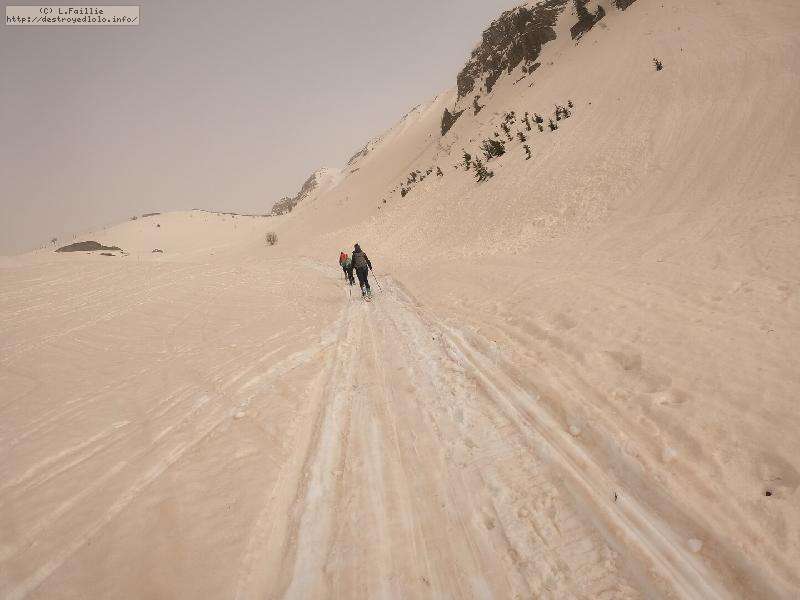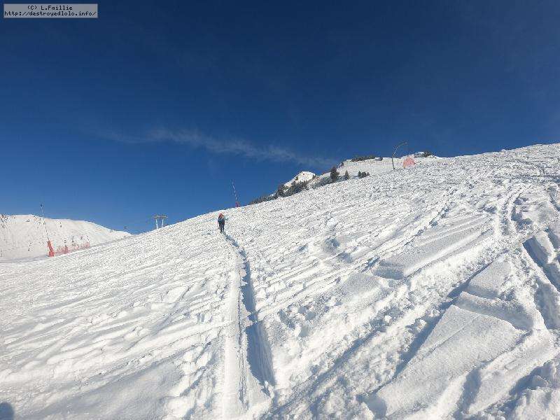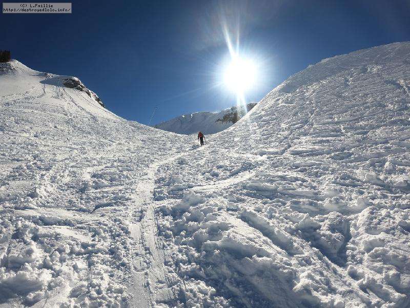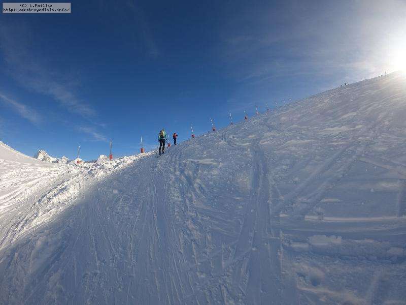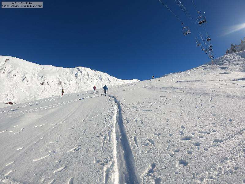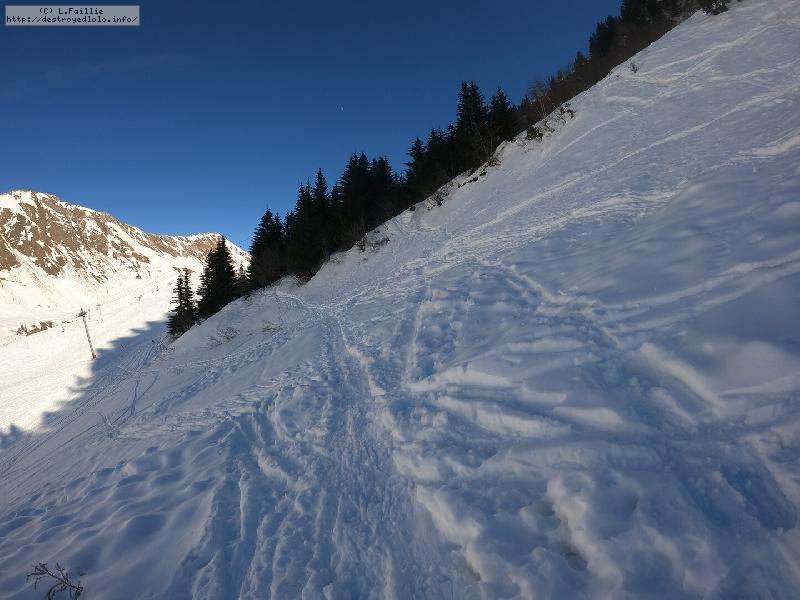 Le risque est faible, nous décidons donc d'aller profiter de la "FreeRide" qui n'est quasiment pas tracée. Par endroit, elle est un peu croûtée à cause du vent (comme on peut le voir au début de la vidéo) : il suffit de choisir sa trajectoire !