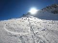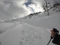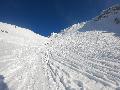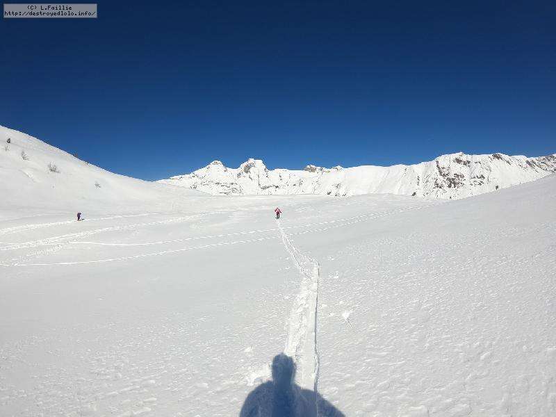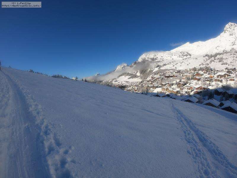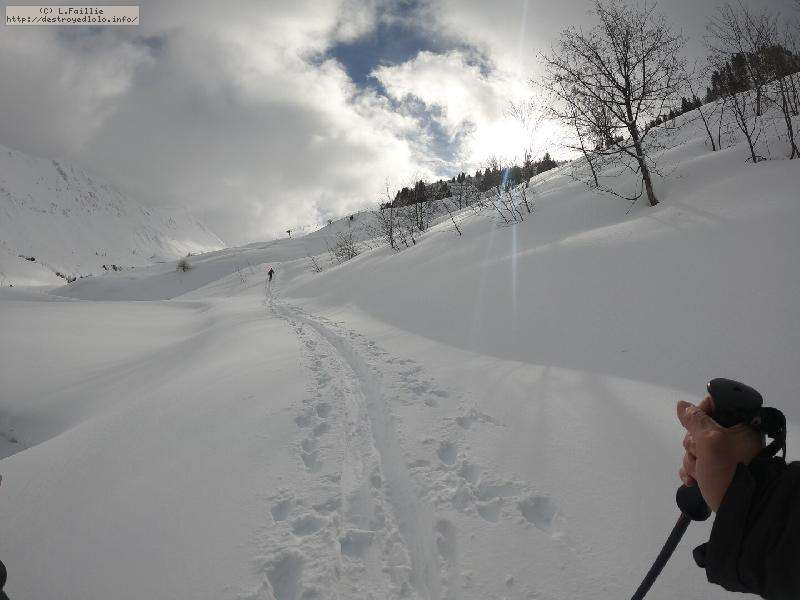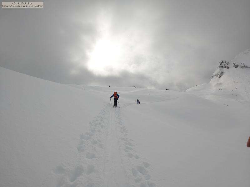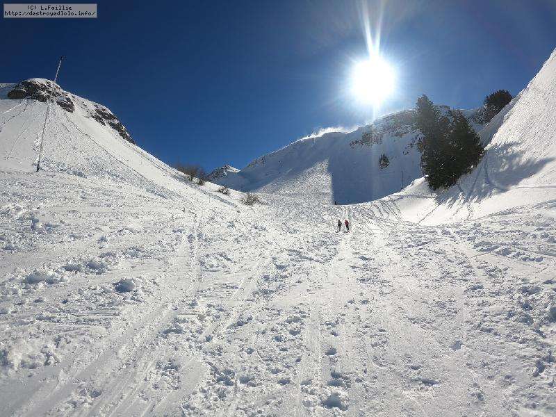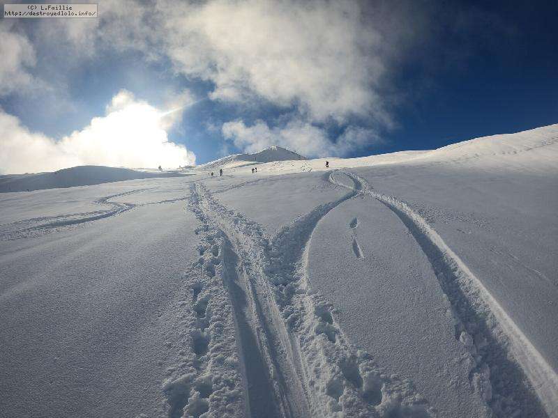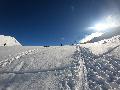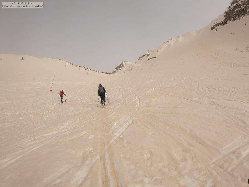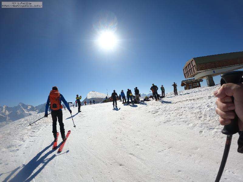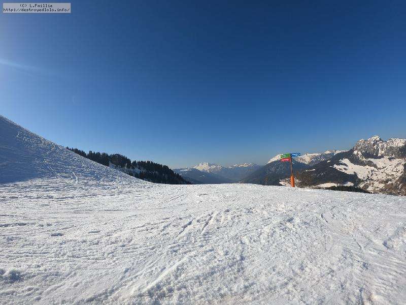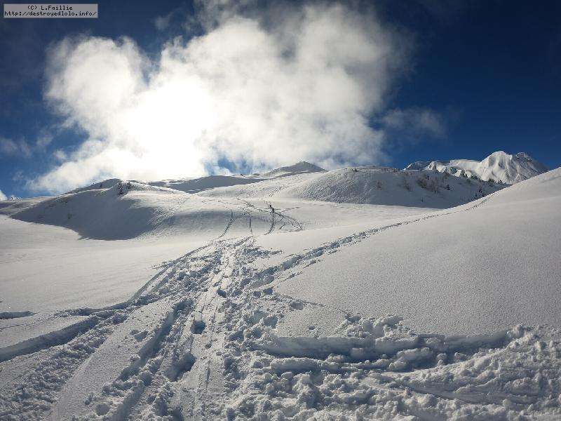 Le risque est faible, nous décidons donc d'aller profiter de la "FreeRide" qui n'est quasiment pas tracée. Par endroit, elle est un peu croûtée à cause du vent (comme on peut le voir au début de la vidéo) : il suffit de choisir sa trajectoire !